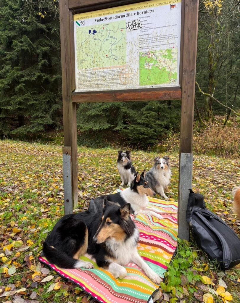 Urlaubsgrüße im August 2025 von Masha, ihrem Töchterchen Flocke und den Shelties. 🙂