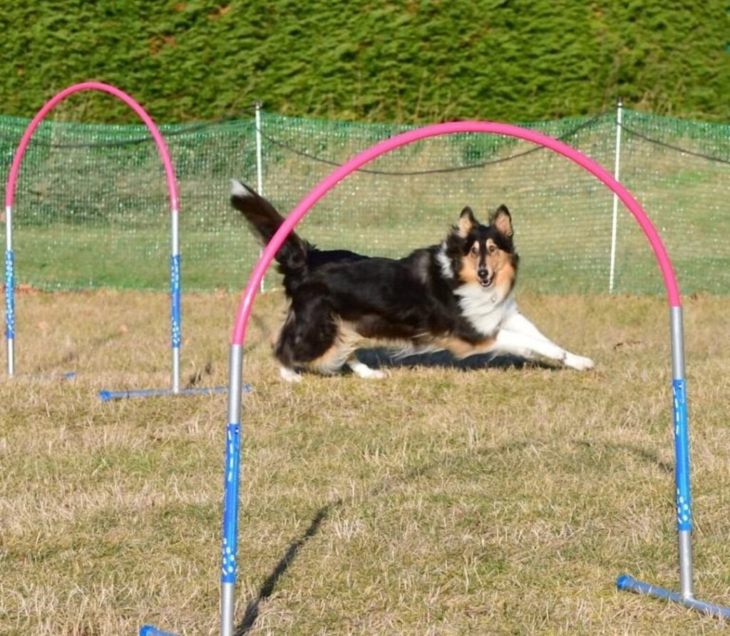 Sie kommt mit allen Hunden klar, wird jetzt altersentsprechend einbißchen frech. Sie ist sehr aktiv, triebstark und liebt Agility . Sie hört und reagiert blitzschnell . In neuen Situationen, die sie verunsichern, möchte sie mir am liebsten auf den Arm springen, Autofahren in der Stadt bekommt ihr leider nicht immer . Wasser liebt sie bis zum Bauch , schwimmen braucht sie nicht; Fine holt ihr die Bälle. Einkaufspassagen nimmt sie gelassen, hat keine Probleme mit den Menschenansammlungen. Wegrennen möchte sie, wenn sie Treppen oder Dinge die nach oben gehen, sieht. Bei der A- Wand im Agility, vor dem Reifenstapel am Kuhstall, Eingangsstufen an Häusern. Wir trainieren 🙂