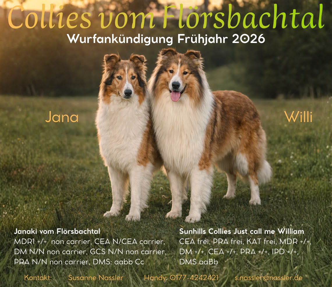 Deshalb ist mein oberstes Zuchtziel, den gendefektfreien, gut geprägten, sozialisierten, charakterstarken, familienfreundlichen und im Lassietyp stehenden Collie zu züchten!