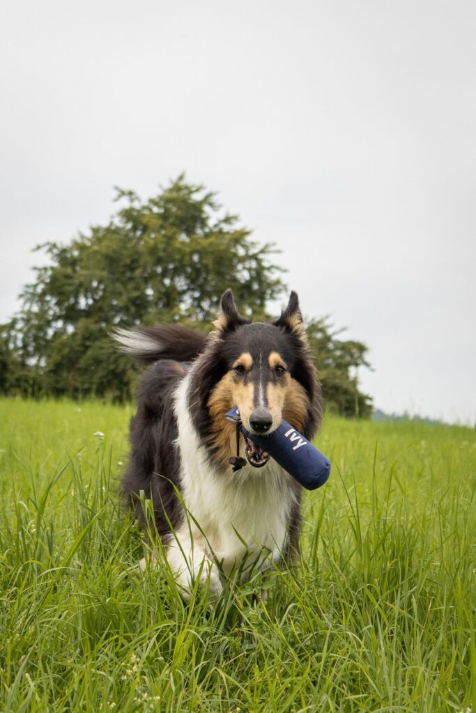 Die Bilder zeigen Ivy ( und mich😉) im Spätsommer bei der Dummyarbeit. Sie ist mit Begeisterung dabei 😊!