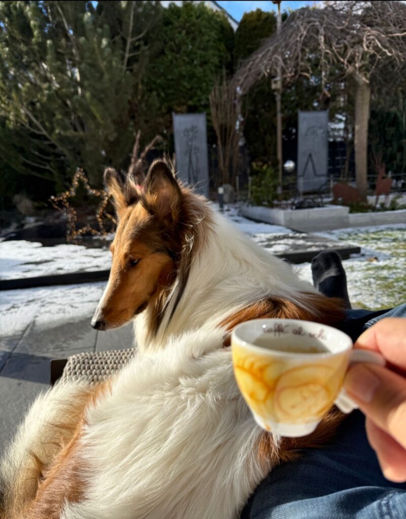 02.09.23 Hier kommt ein schönes Fotos von Sam bei seinem Ausflug ins Kaffee 🙂