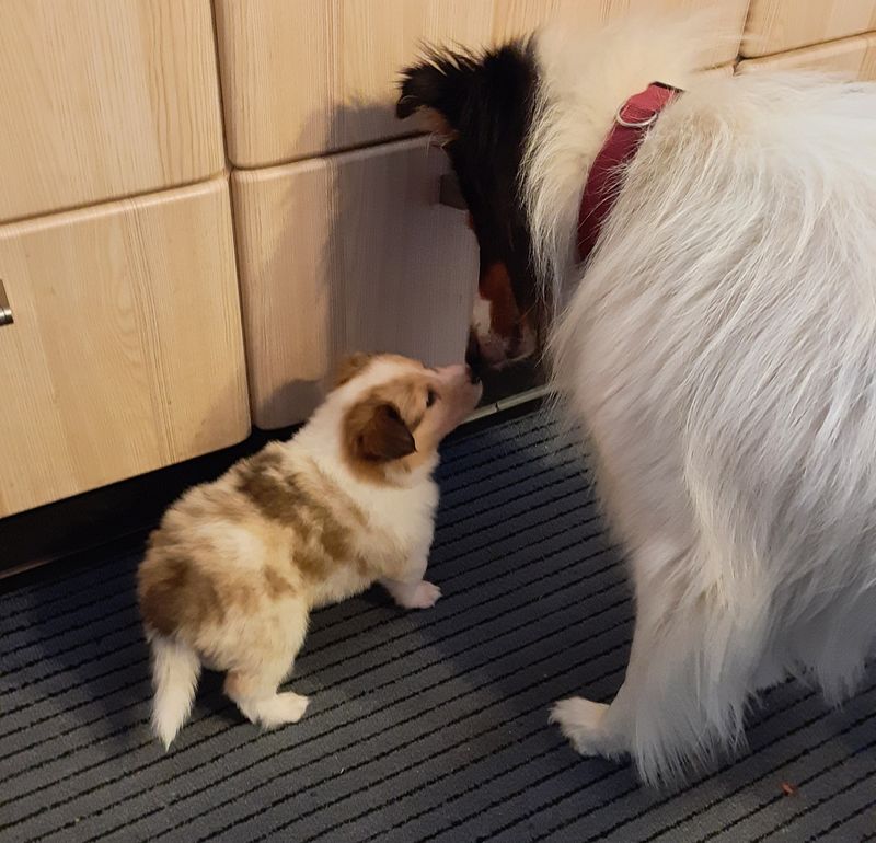Ein Treffen im letzten Schnee mit den KHC. 🙂 Der junge Mann ist nur 4 Wochen älter als Mina 😀