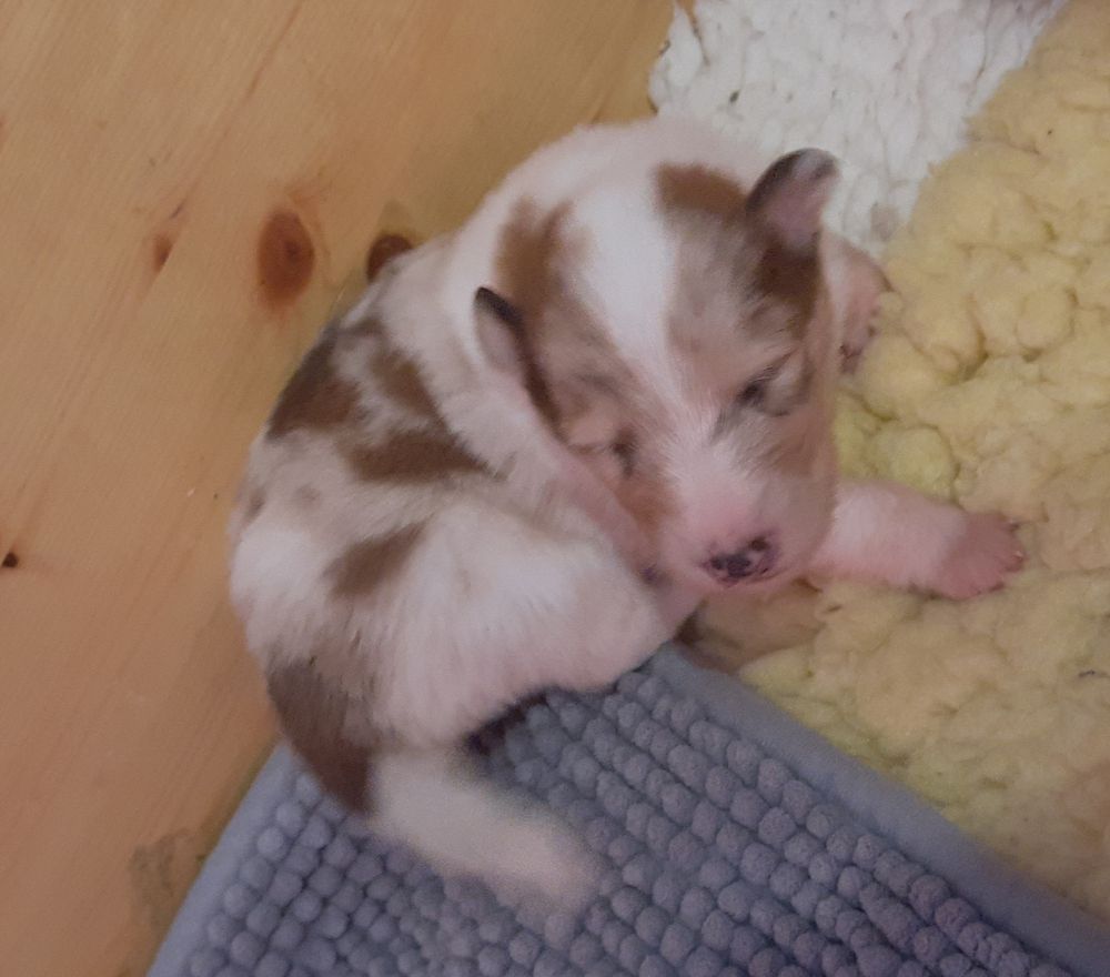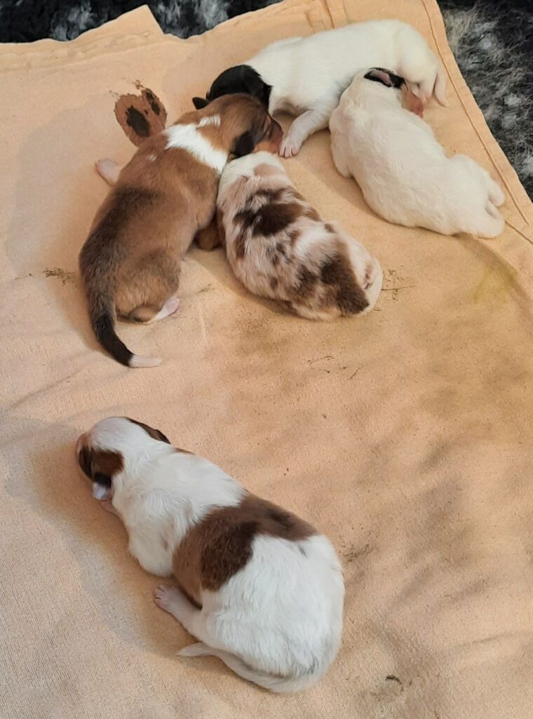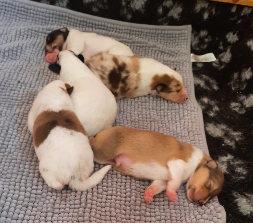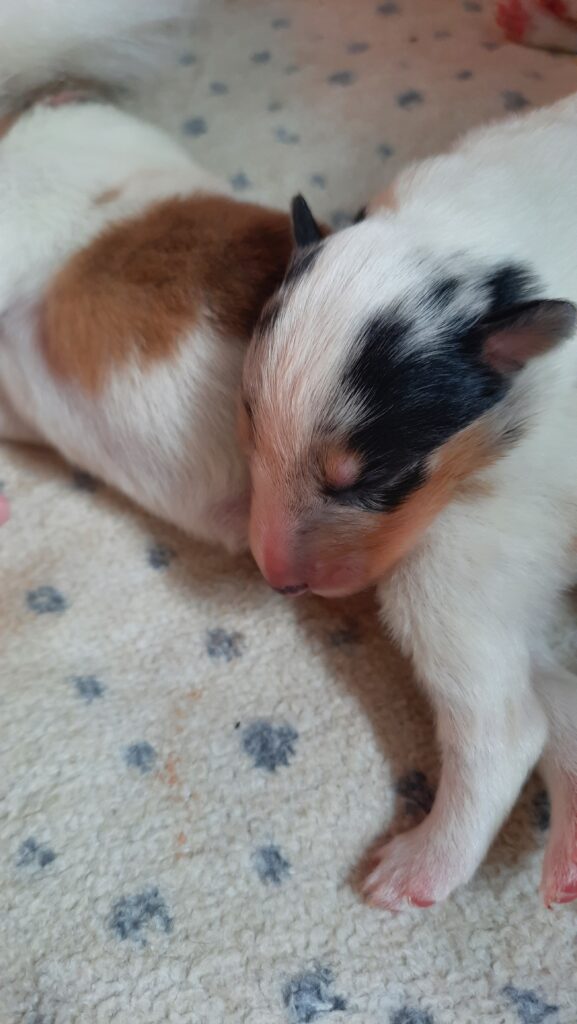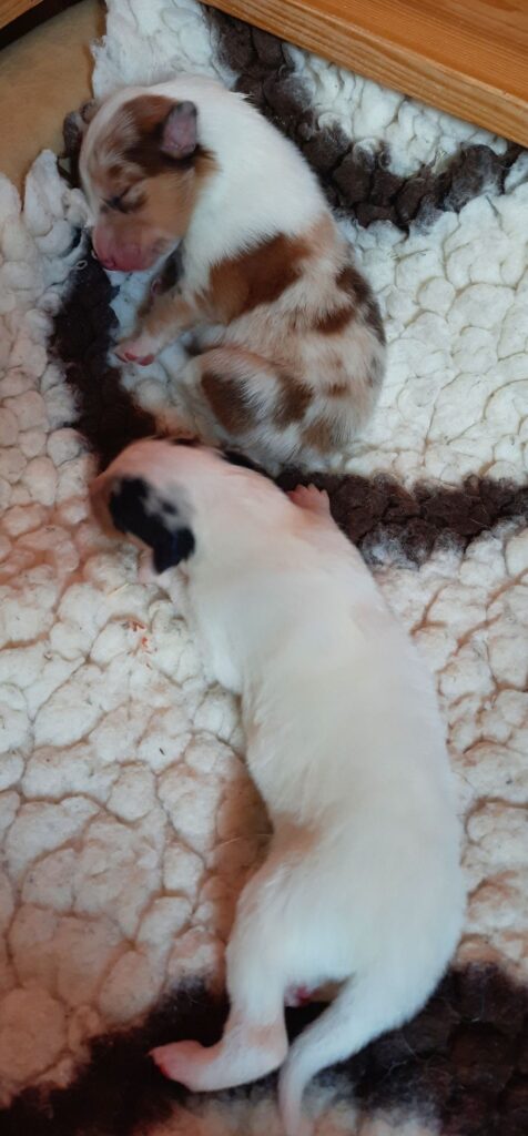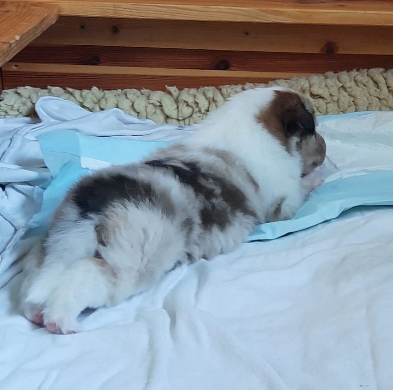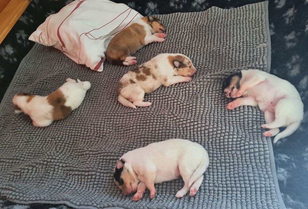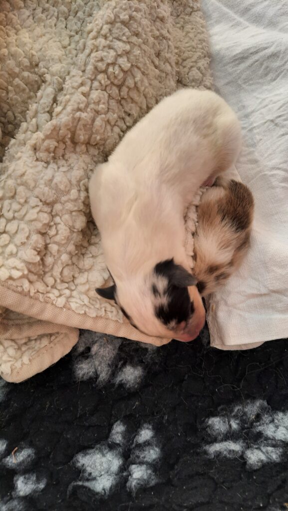 Woche 1 vom 17.-23.08.25 :Die kleinen Krümel entwickeln sich prima und sind eine ganz besondere Truppe. Einfach nur liebenswert. Vielleicht auch weil ich zum 1. Mal in meiner ganzen Laufbahn als Züchterin (immerhin gehe ich ins 15. Jahr) so eine Farbe und dann noch als Hündin erhalten habe. Schließlich träume ich schon über 10 Jahre davon, deshalb glaube ich auch das mein Schatz von oben mit gewirkt hat. Gaby möchte ich auf diesem Wege auch noch einmal danken das sie mir ihren Marley für Tara anvertraut hat. Ganz lieben Dank Gaby 🙂