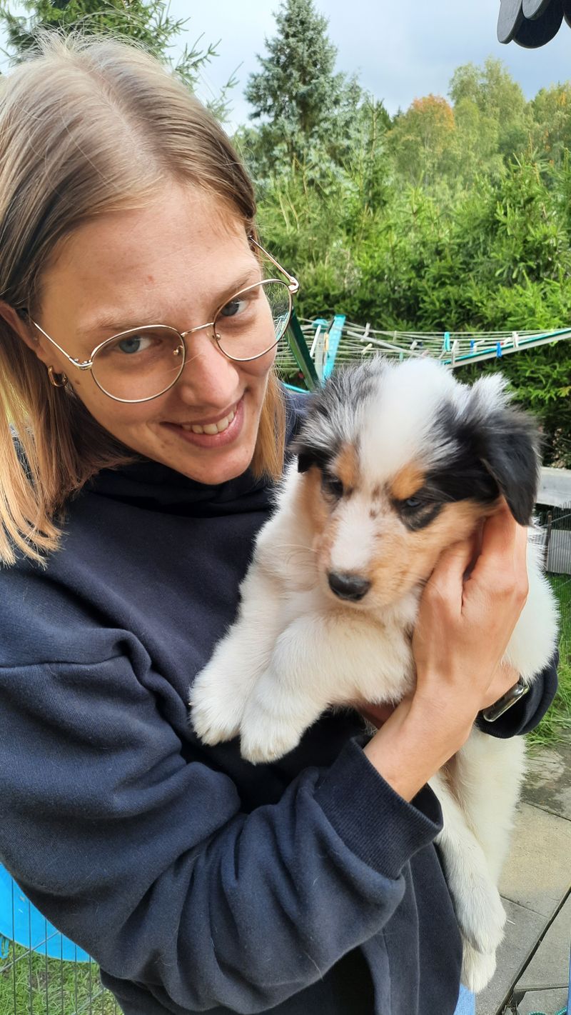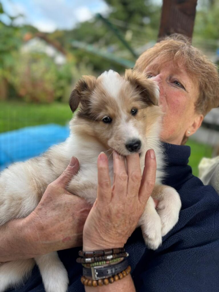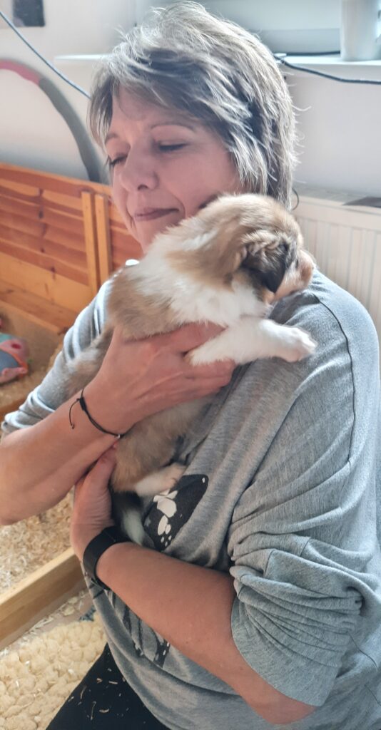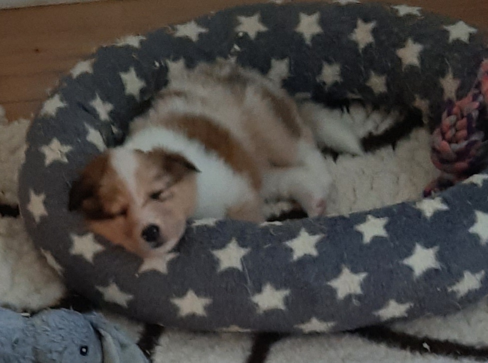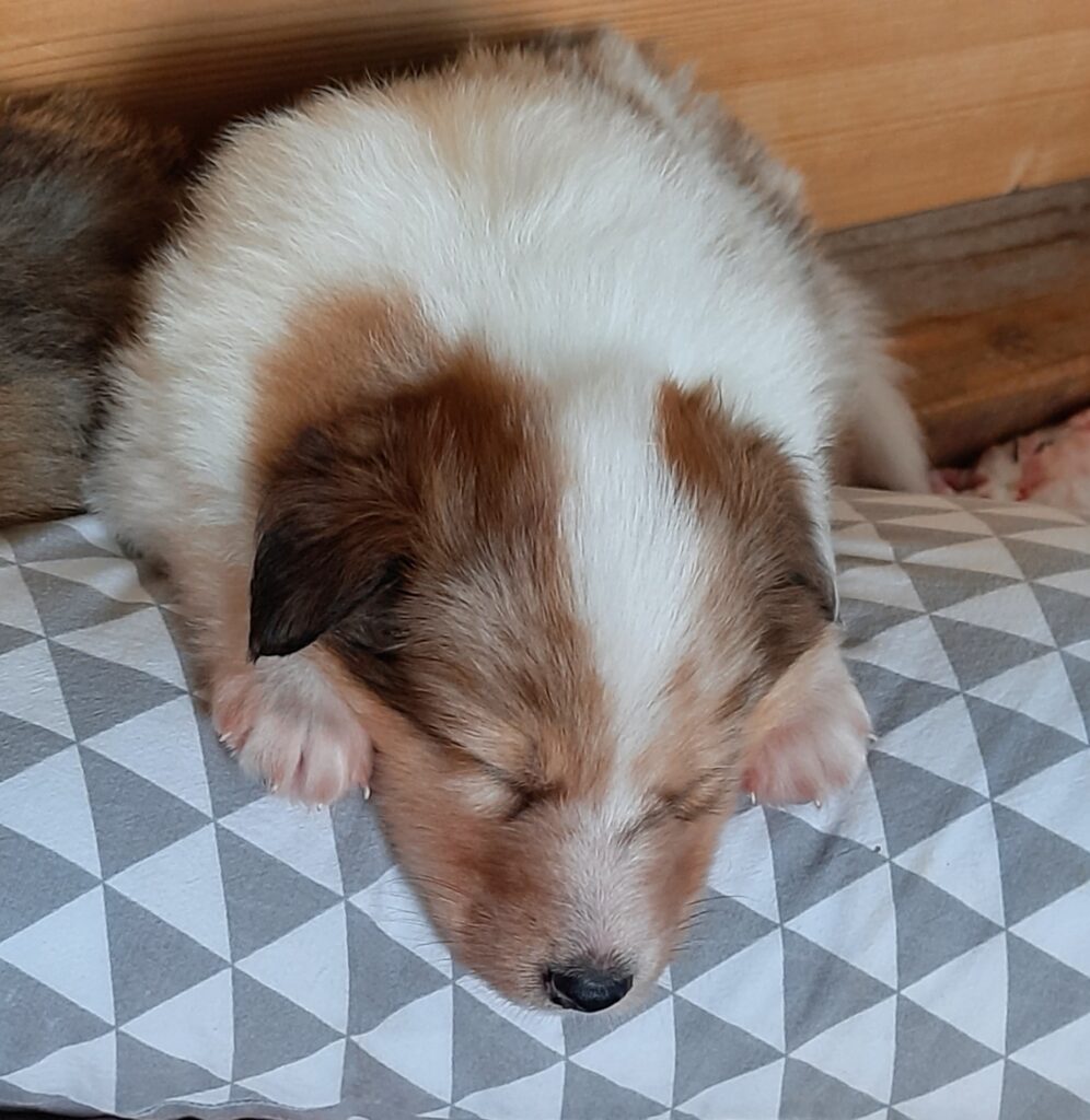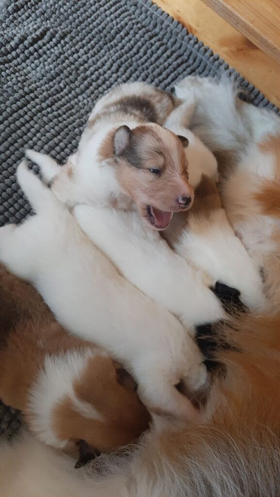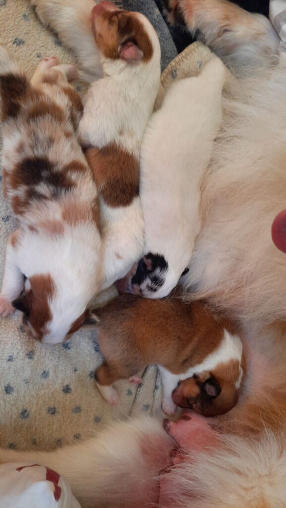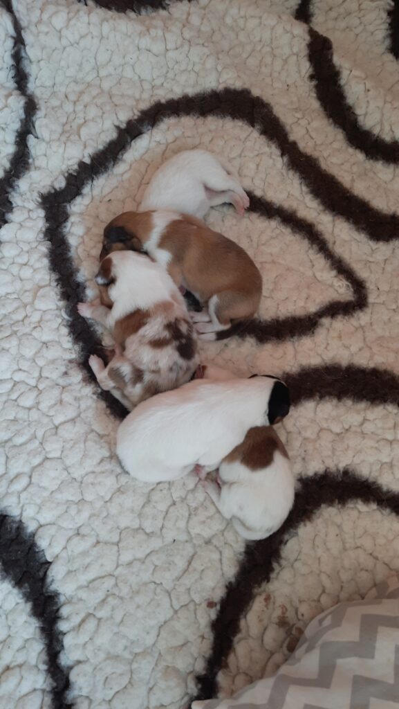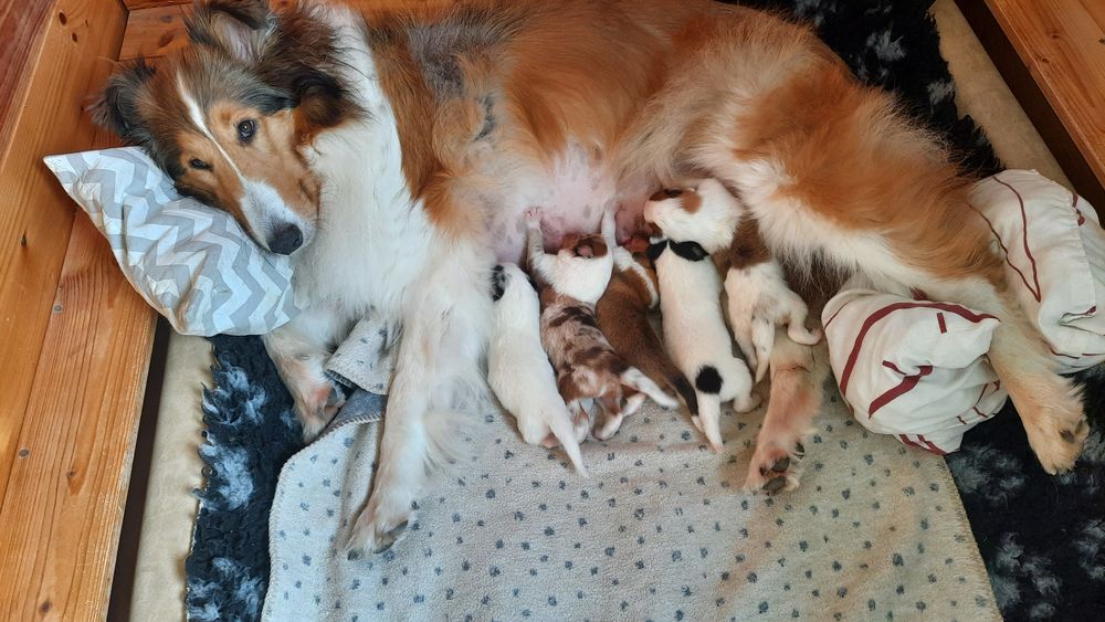 Woche 1 vom 17.-23.08.25 :Die kleinen Krümel entwickeln sich prima und sind eine ganz besondere Truppe. Einfach nur liebenswert. Vielleicht auch weil ich zum 1. Mal in meiner ganzen Laufbahn als Züchterin (immerhin gehe ich ins 15. Jahr) so eine Farbe und dann noch als Hündin erhalten habe. Schließlich träume ich schon über 10 Jahre davon, deshalb glaube ich auch das mein Schatz von oben mit gewirkt hat. Gaby möchte ich auf diesem Wege auch noch einmal danken das sie mir ihren Marley für Tara anvertraut hat. Ganz lieben Dank Gaby 🙂