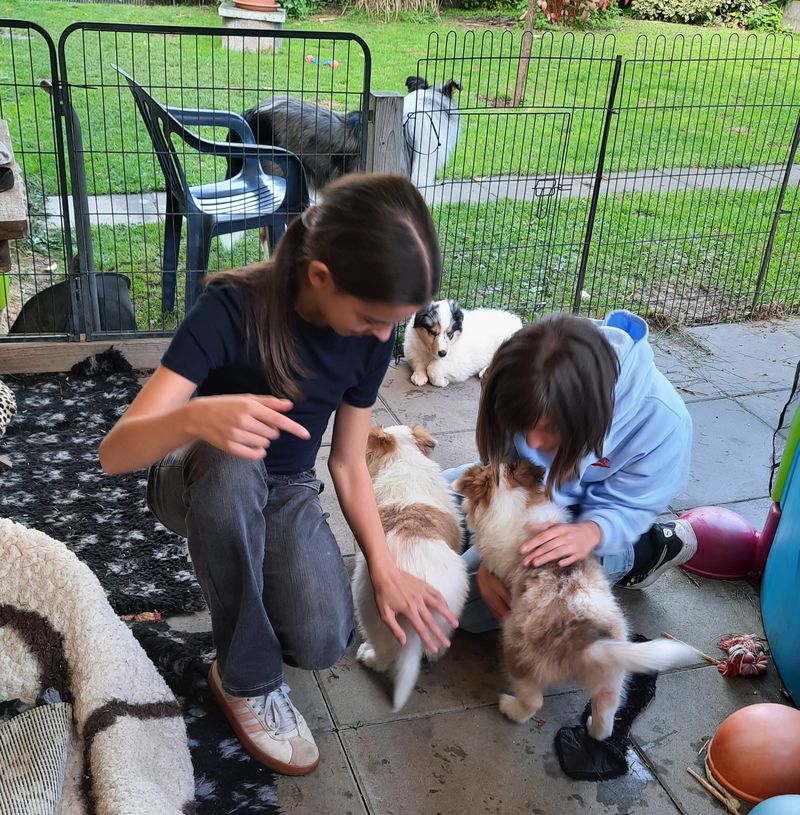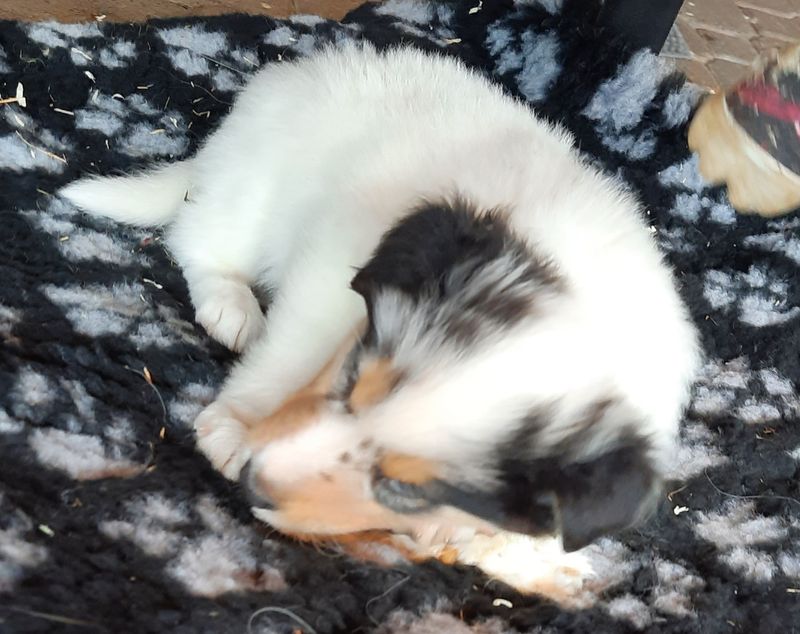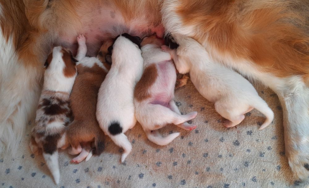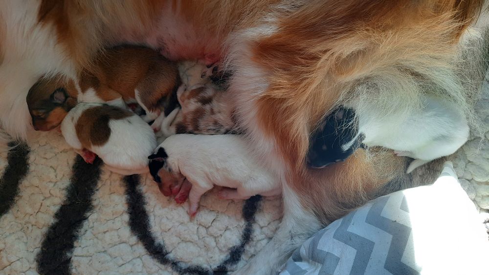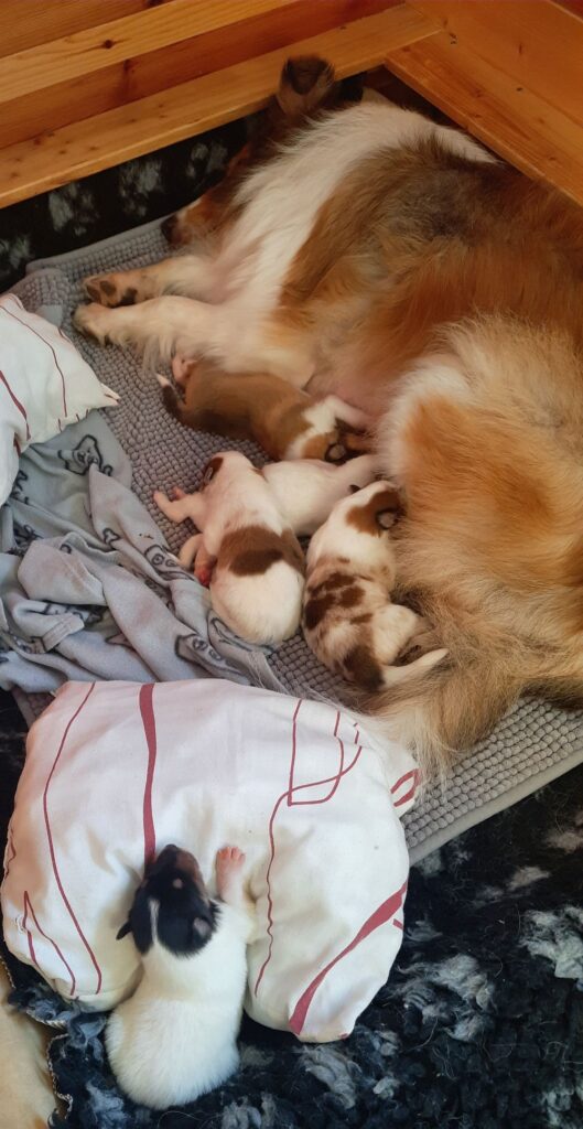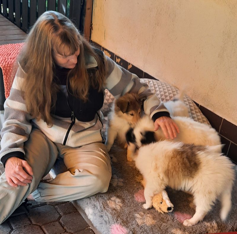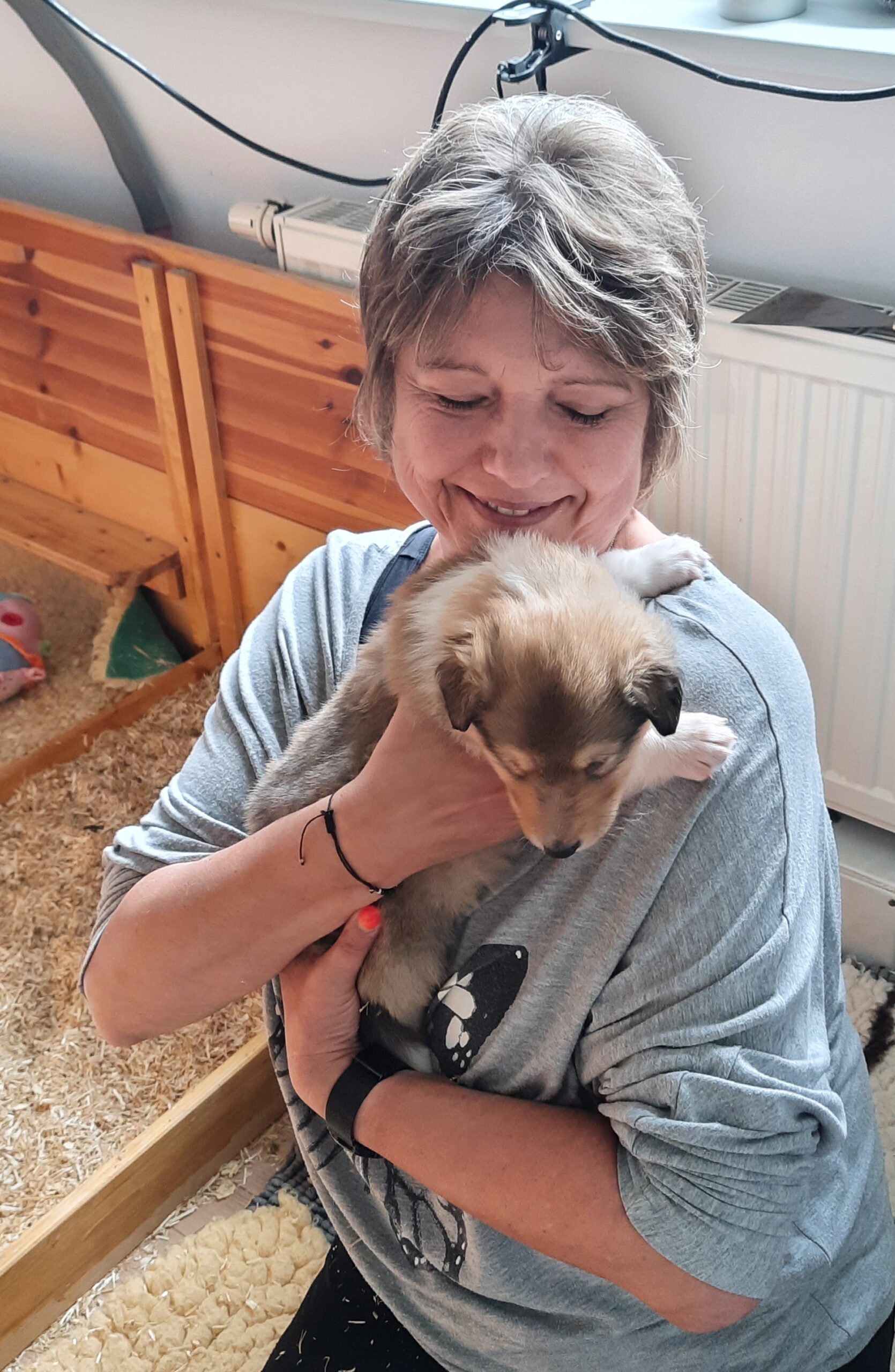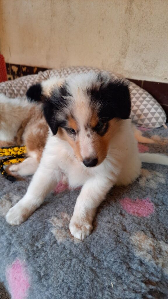 Woche 1 vom 17.-23.08.25 :Die kleinen Krümel entwickeln sich prima und sind eine ganz besondere Truppe. Einfach nur liebenswert. Vielleicht auch weil ich zum 1. Mal in meiner ganzen Laufbahn als Züchterin (immerhin gehe ich ins 15. Jahr) so eine Farbe und dann noch als Hündin erhalten habe. Schließlich träume ich schon über 10 Jahre davon, deshalb glaube ich auch das mein Schatz von oben mit gewirkt hat. Gaby möchte ich auf diesem Wege auch noch einmal danken das sie mir ihren Marley für Tara anvertraut hat. Ganz lieben Dank Gaby 🙂
