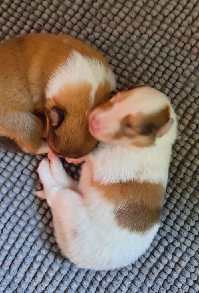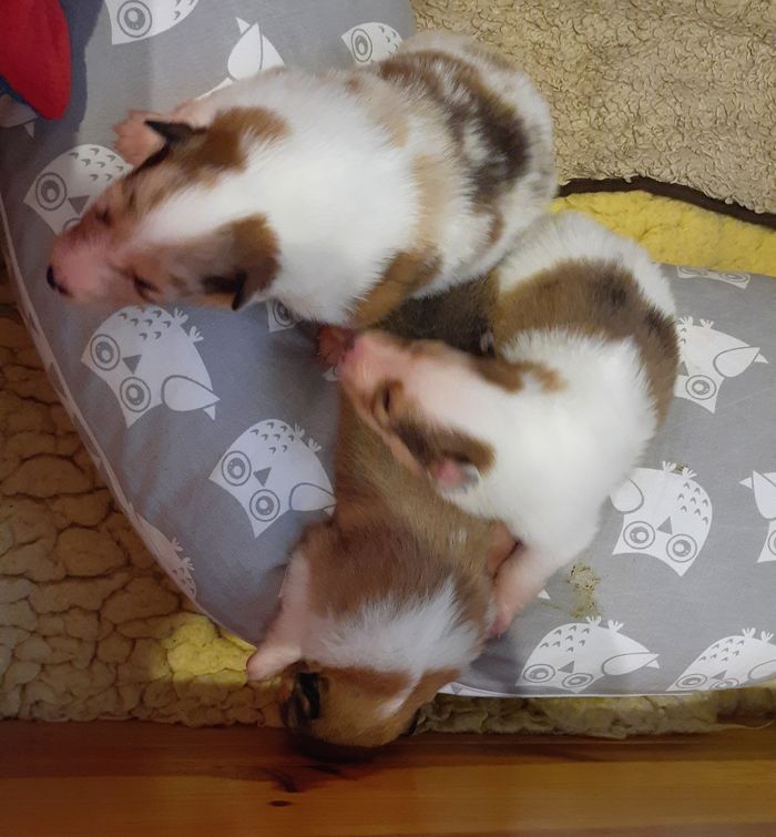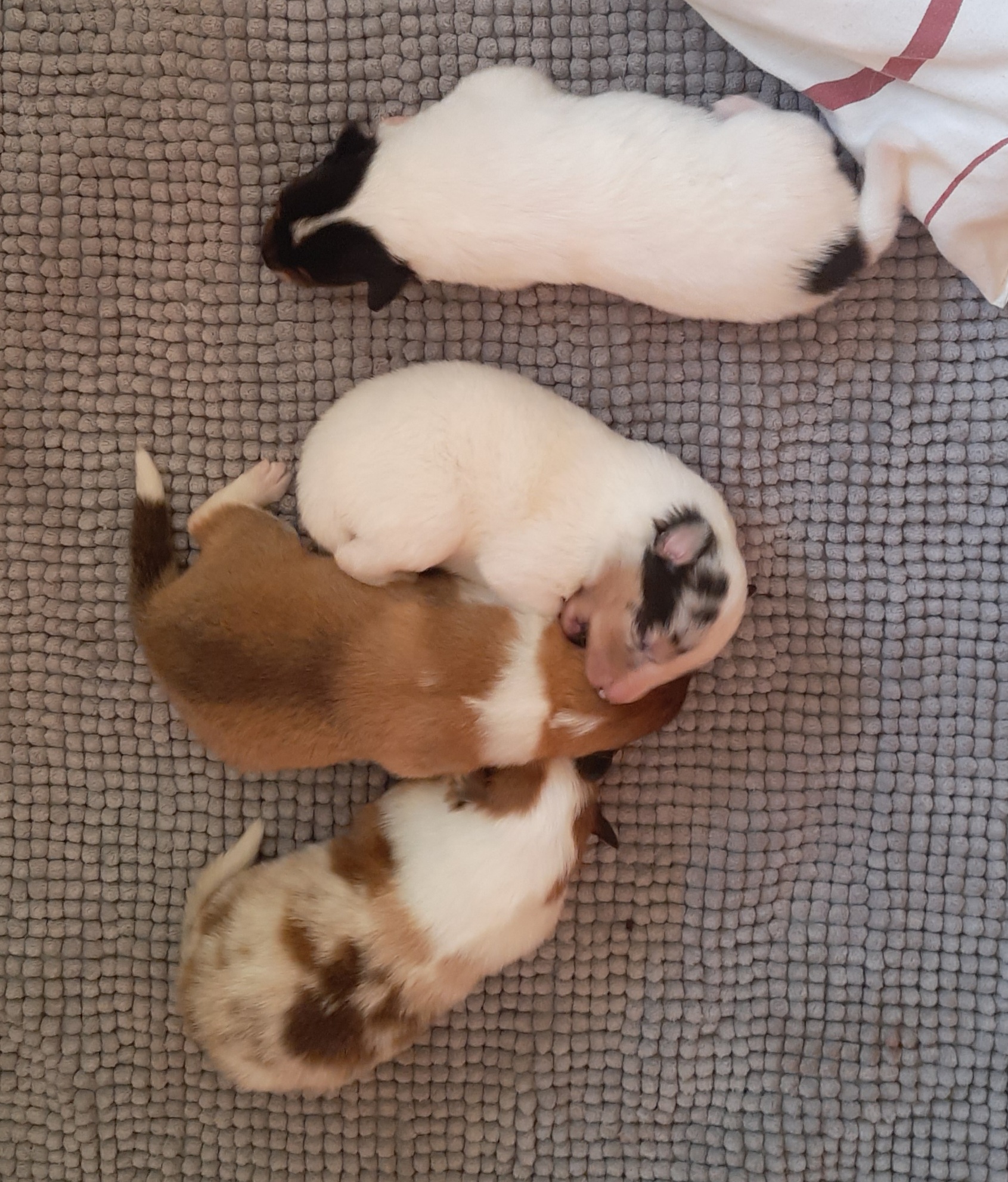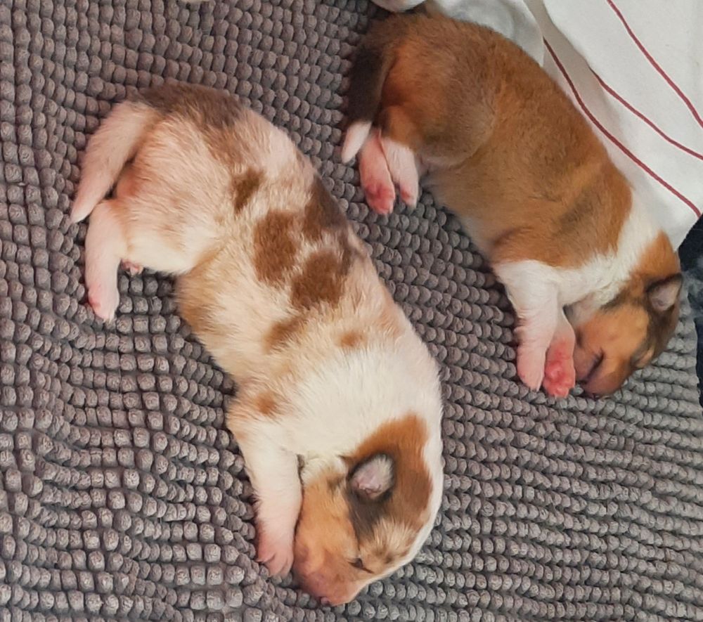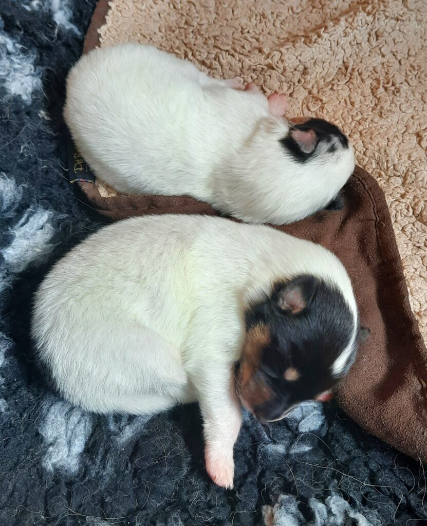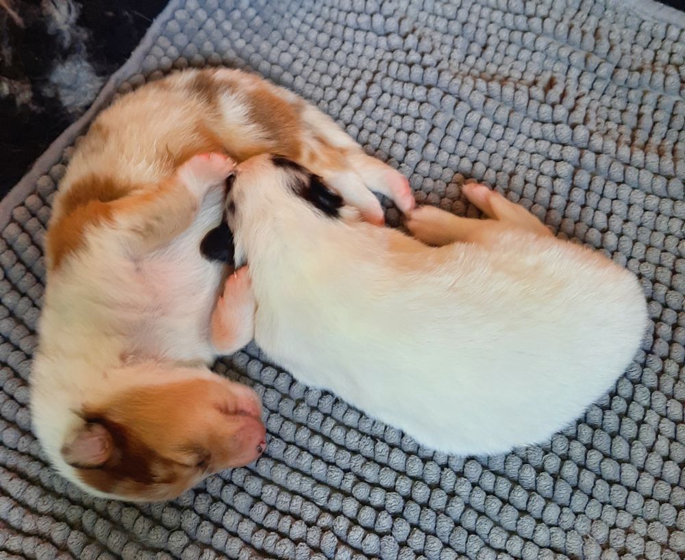 31.08.25 (14 Tage alt, 2 Wochen) Hallihallo hier spricht die Schwerste vom Ochen Clan, wenn wir das so machen, dass immer der oder die Schwerste schreiben dürfen, dann werde ich das wohl hier sein. 😉 🙂 Hi hier ist eure Shuri 😀 Also wir sind ja nun schon in der 3. Woche und vorgestern kamen leider, wie wohl bei allen Lütten, die Würmer ins Spiel, denn obwohl wir Mama bestimmt gefühlt 10 mal gerufen haben und wir die Milchbar leer gesoffen haben, hatten wir abgenomme anscheinend haben die noch MEHR Hunger als wir. Prompt gabs da was in unser Mäulchen und die Nacht war dann etwas uffregend, wegen Bauchweh und so… Mama hat sich dann auch mal für ein paar Stunden eine Auszeit gegönnt, aber Frauli lag ja neben uns und hat unsere Bauchis gestreichelt, wo es grade nötig war. Aber heute morgen hatte die Waage super Gewichte angezeigt, also hat es ja was genutzt. Mama produziert auch ordentlich Milch, wie ihr auf der Seite unter (Welpen O-Wurf) sehen könnt. Dann zeig ich euch jetzt noch schöne Fotos von uns , denn wir haben alle unsere Augen geöffnet und sehen jetzt immer was wir bis jetzt nur riechen und ganz leise hören konnten. Liebe Grüße eure Shuri 🙂