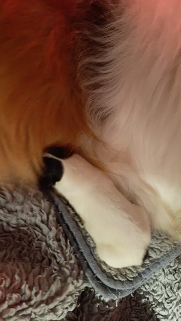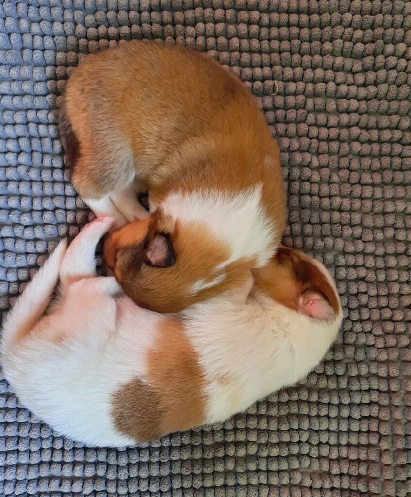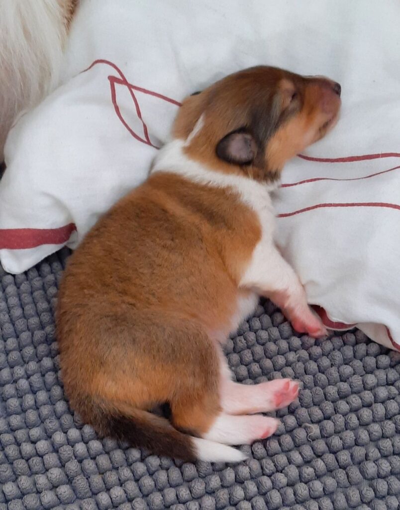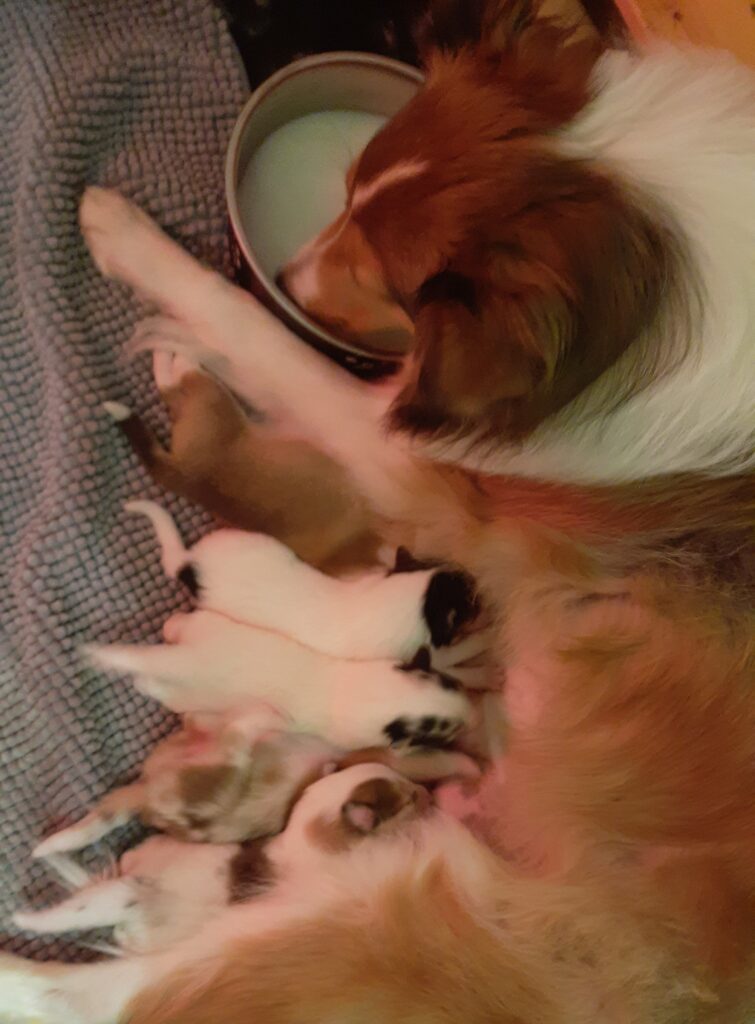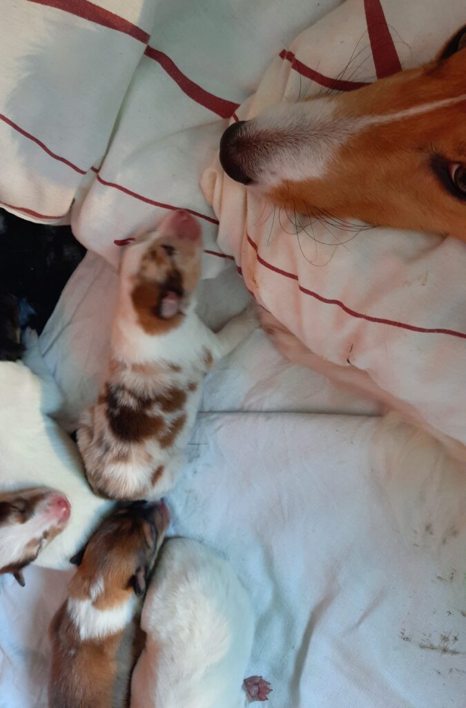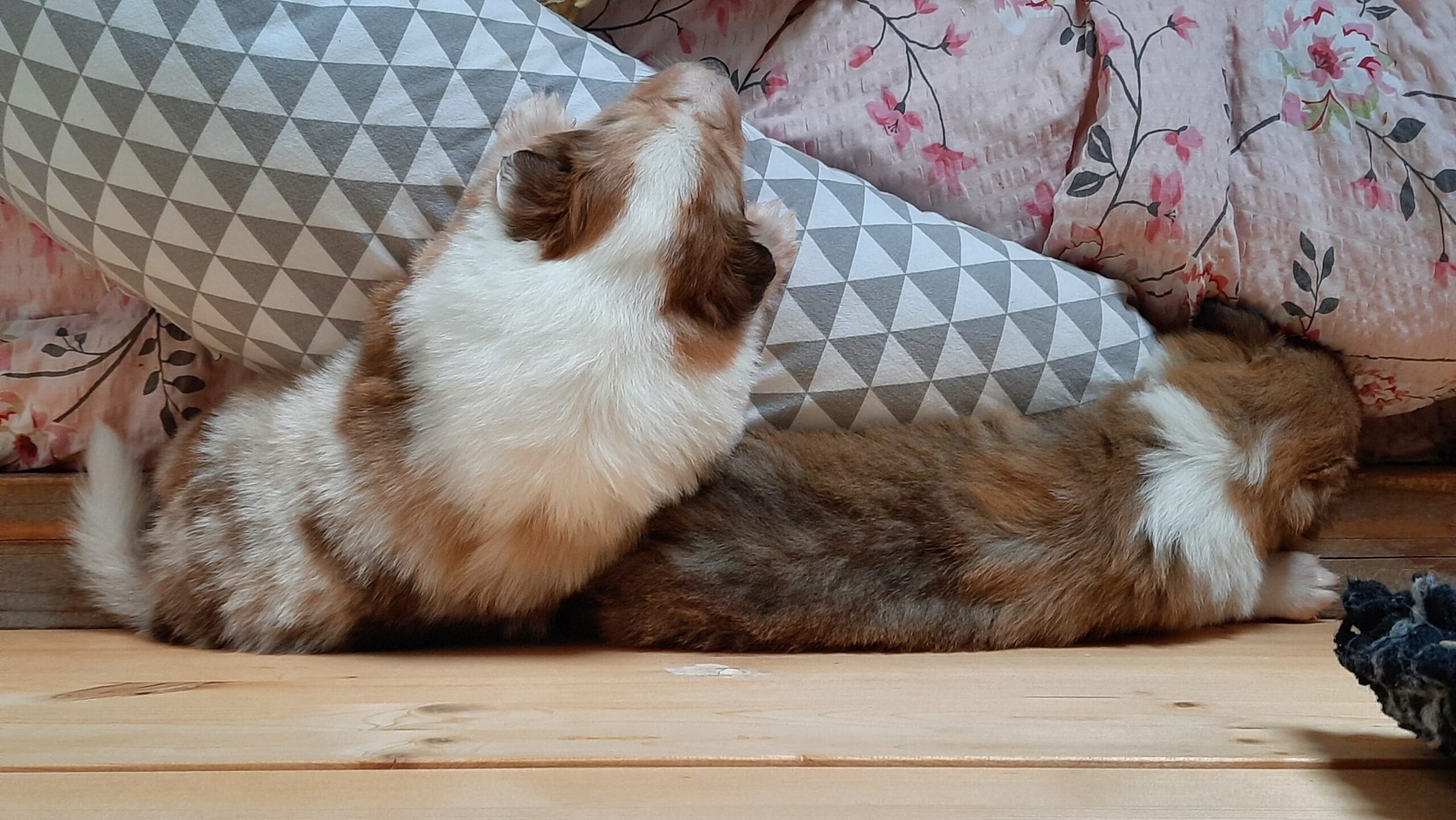 31.08.25 (14 Tage alt, 2 Wochen) Hallihallo hier spricht die Schwerste vom Ochen Clan, wenn wir das so machen, dass immer der oder die Schwerste schreiben dürfen, dann werde ich das wohl hier sein. 😉 🙂 Hi hier ist eure Shuri 😀 Also wir sind ja nun schon in der 3. Woche und vorgestern kamen leider, wie wohl bei allen Lütten, die Würmer ins Spiel, denn obwohl wir Mama bestimmt gefühlt 10 mal gerufen haben und wir die Milchbar leer gesoffen haben, hatten wir abgenomme anscheinend haben die noch MEHR Hunger als wir. Prompt gabs da was in unser Mäulchen und die Nacht war dann etwas uffregend, wegen Bauchweh und so… Mama hat sich dann auch mal für ein paar Stunden eine Auszeit gegönnt, aber Frauli lag ja neben uns und hat unsere Bauchis gestreichelt, wo es grade nötig war. Aber heute morgen hatte die Waage super Gewichte angezeigt, also hat es ja was genutzt. Mama produziert auch ordentlich Milch, wie ihr auf der Seite unter (Welpen O-Wurf) sehen könnt. Dann zeig ich euch jetzt noch schöne Fotos von uns , denn wir haben alle unsere Augen geöffnet und sehen jetzt immer was wir bis jetzt nur riechen und ganz leise hören konnten. Liebe Grüße eure Shuri 🙂