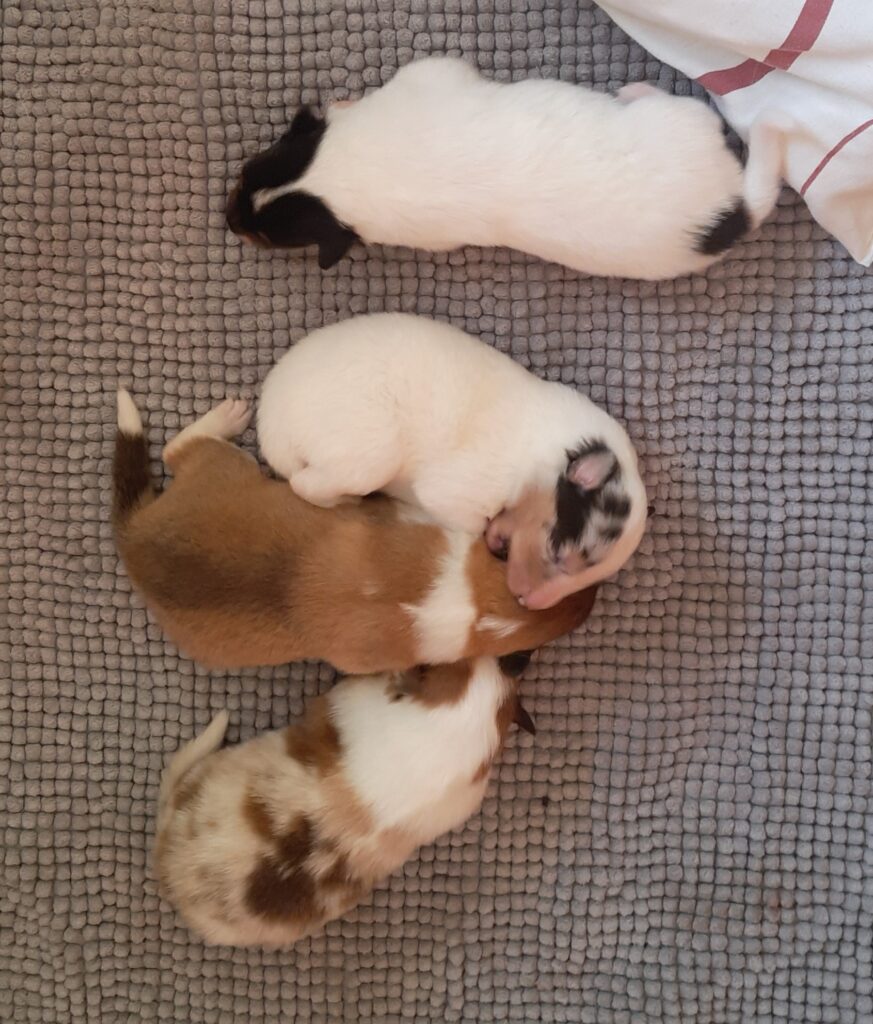 Woche 2 vom 24.-30.08.25 : Da wir hier ja kleine Sonntagskinder haben, wird natürlich auch immer Sonntags ins Welpentagebuch geschrieben. Die Krümel sind so liebe Mäuse, bestimmt weil sie am Sonntag geboren wurden, aber mich begeister, nach genau einer Woche können manche schon alleine ihr Kaka Miniwürstchen machen und krabbeln was das Zeug hält. 3 Stunden können sie ruhig sein bis der Nachschub von einem der Brüder gefordert wird, damit die jungen Damen an ihre Mahlzeit kommen. Musste richtig lachen als ich das heute Nacht beobachtet habe. Daher auch die Gewichte unter Welpen – O Wurf, also bitte nicht wundern 😉 Bald werden hier auch die ersten Äuglein aufgehen, bin schon so gespannt. Also bis bald und wir sagen dann mal Tchüss. 🙂