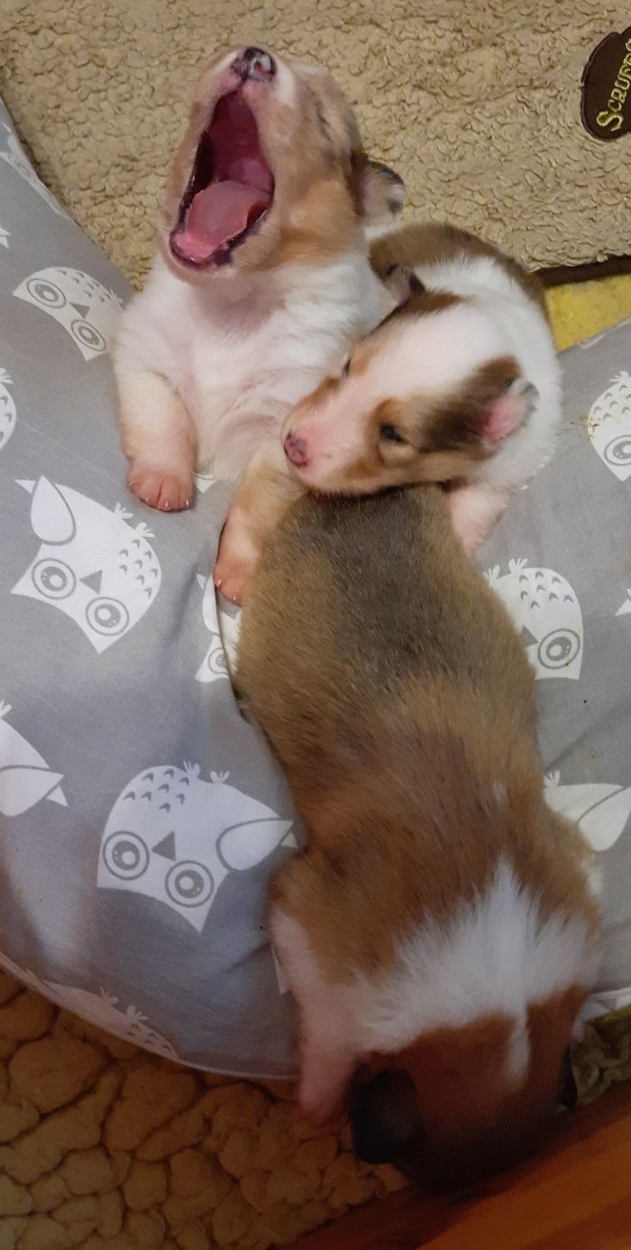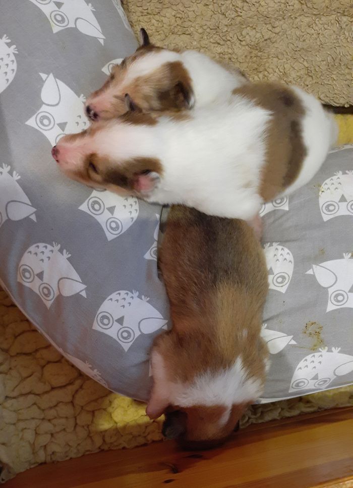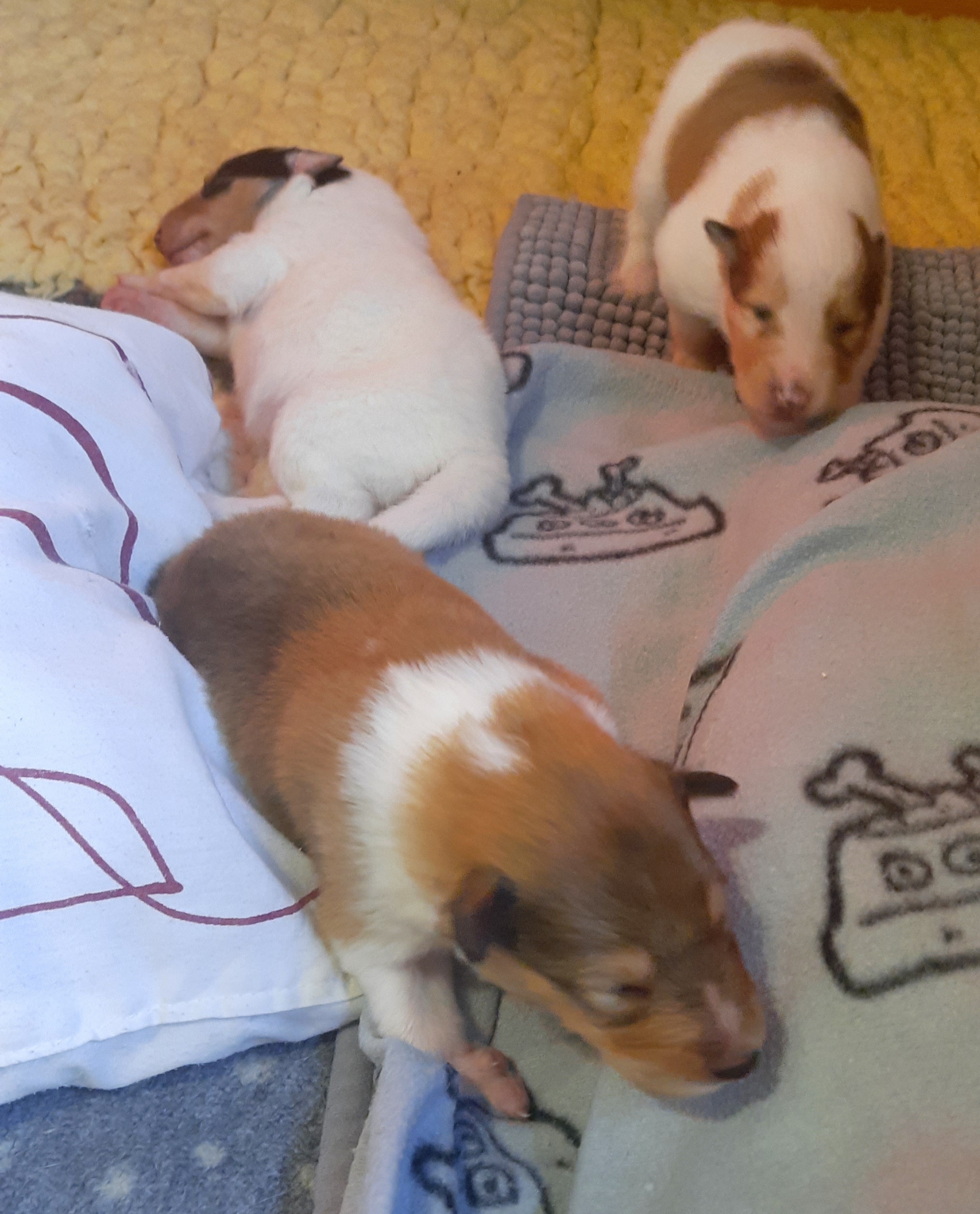 28.08.25 (11 Tage alt, 1, 5 Wochen) Huhu, wir sinds die Ochen Krümel , wir wollten euch mal wieder ein kleines Feedback aus unserem Leben geben. Also… einige von uns, fast alle können schon super weit laufen und gucken können wir auch, zwar noch sehr unscharf, aber wir erkennen wenn Frauli die Lampe anmacht, ja und riechen können wir super. Mama hat nämlcih Käsefüsse, das riechen wir immer sofort wenn sie in unsere Wurfkiste kommt ja und ein ganz klein wenig können wir auch schon hören, so ähnlich wie Linny 😛 Frauli sagt immer die hat Durchzug in den Löffeln. 😀 Aber ansonsten sind wir wirklich lieb und ruhig, wir lassen unsere Mama und Frauli schon 3-4 Stunden lang schlafen. So lange kommen wir ohne unsere Milchbar aus. Jetzt zeigen wir euch noch ein paar süße Fotos von uns. Bis bald , in 3 Tagen kommen wir schon in die 3. Woche. Tschüsssssiiii eure Krümel 🙂