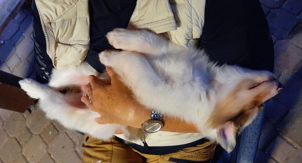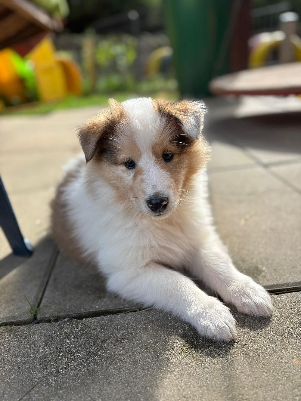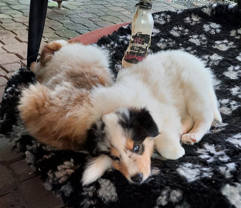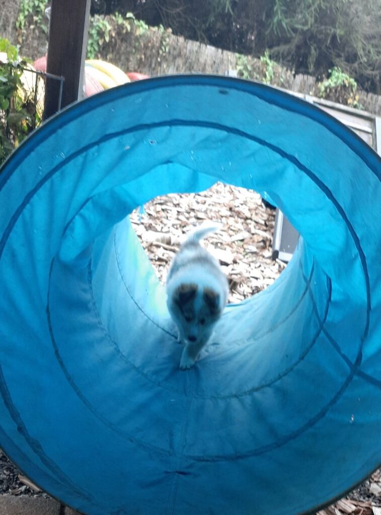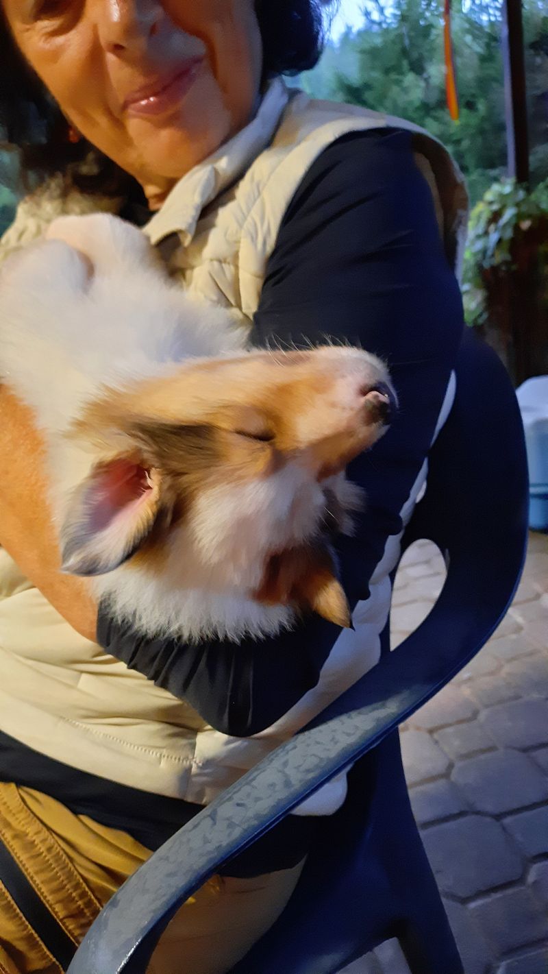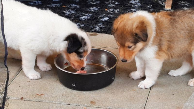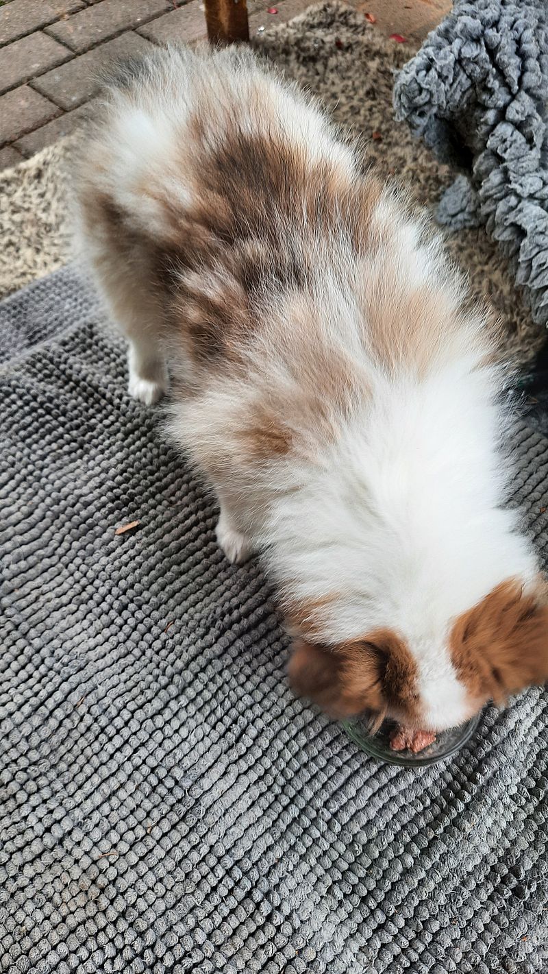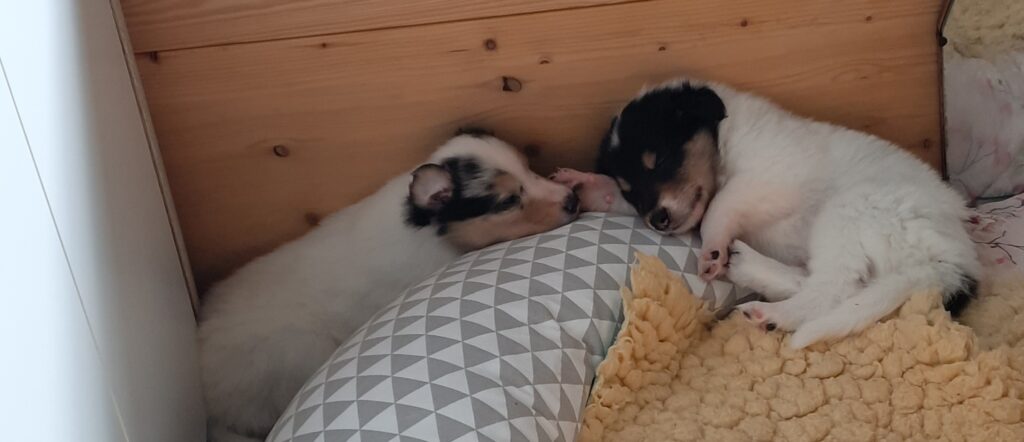20.09.25 (41 Tage alt, fast 5 Wochen) Was soll ich sagen, … mich kriegt keiner ein 😉 :-P. Also hier kommt Silas, der große Weiße 😀 Wollte euch doch berichten was wir hier alles so durchmachen 😀 Also, den kleinen Garten oben hatten wir ja nun ein paar Tage in Beschlag genommen auch unser Futter inclusive Milchbar gab es draußen. Auch die großen Hunde waren bei uns die süße Linny hat super mit uns gespielt und auch IHREN Knochen geteilt. 🙂 Da war auch viel los, es kamen immer mal wieder neugierige Leute die dann streicheln wollten und so allerlei wissen wollten. Frauli ist ja da, die kann das regeln. aber heute war der Knaller wir sind in den großen Outdoor Garten gekommen. Das ist toll da und ganz viele Knochen gabs und unsere geliebe Geräusche Kiste war auch da. Was will man mehr… naja wenn du so fragst… FUTTER wäre nicht schlecht. 😀