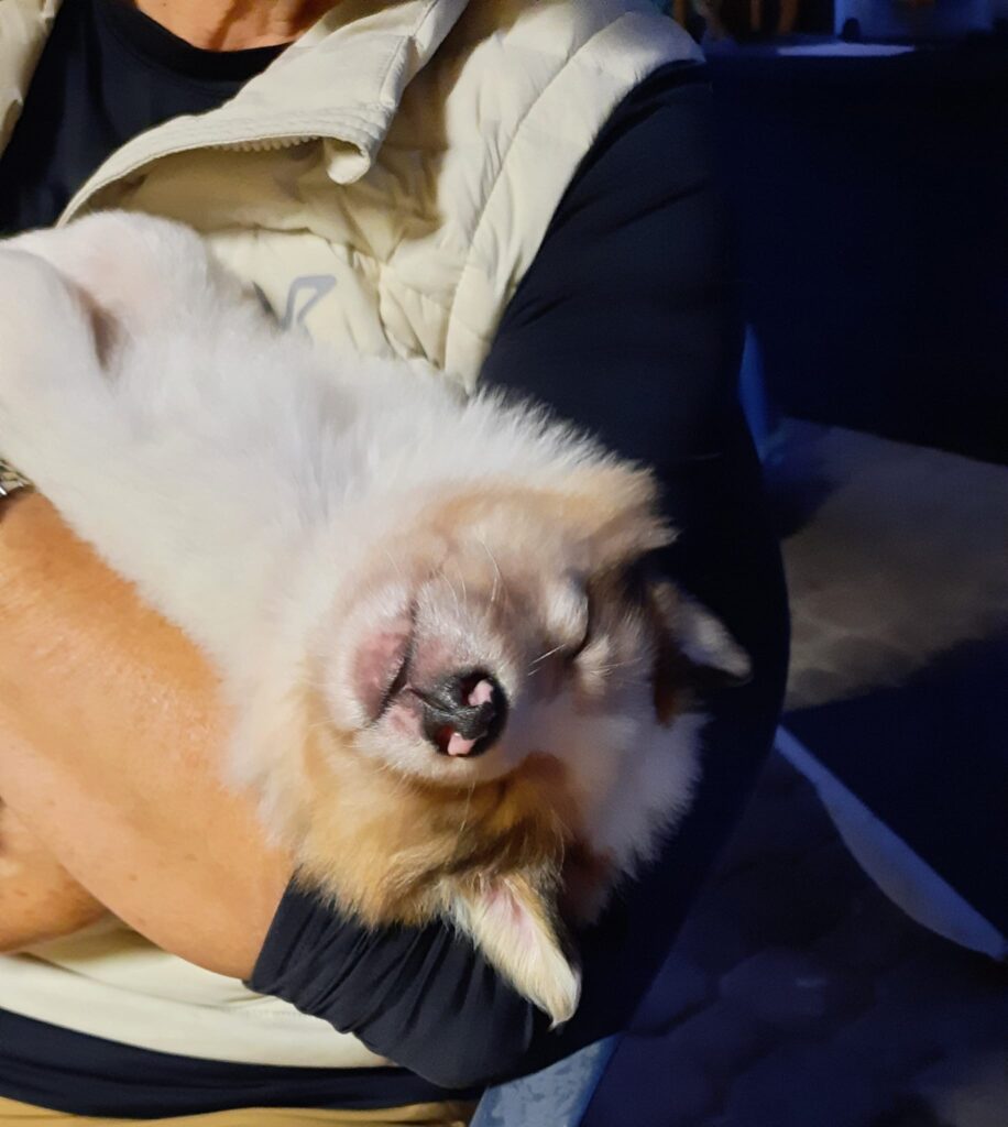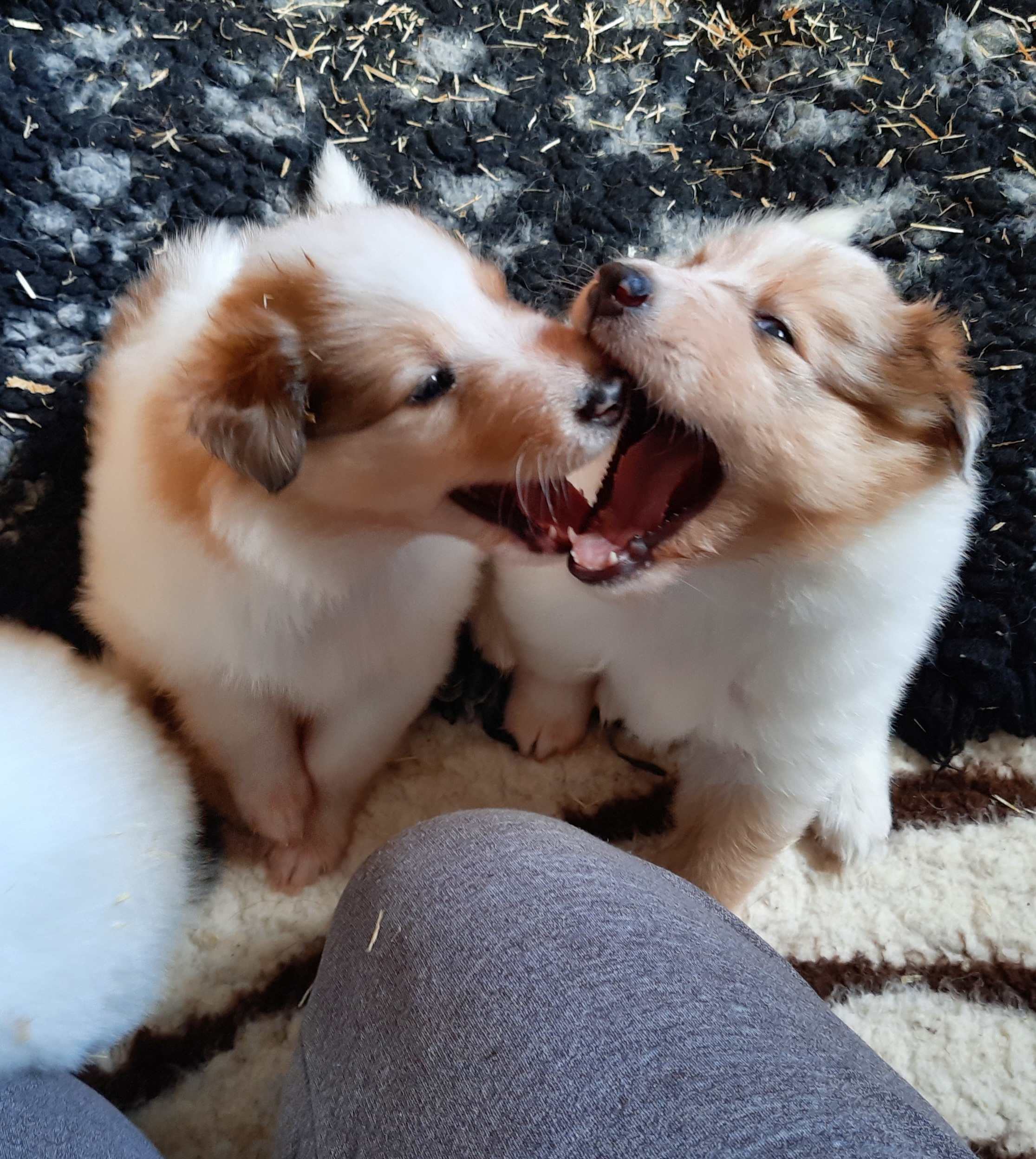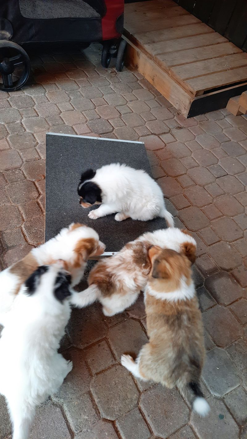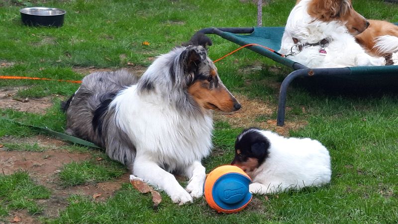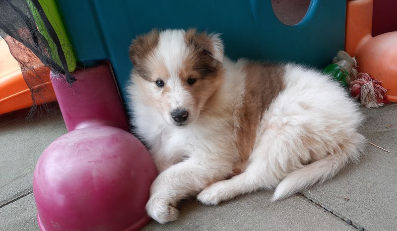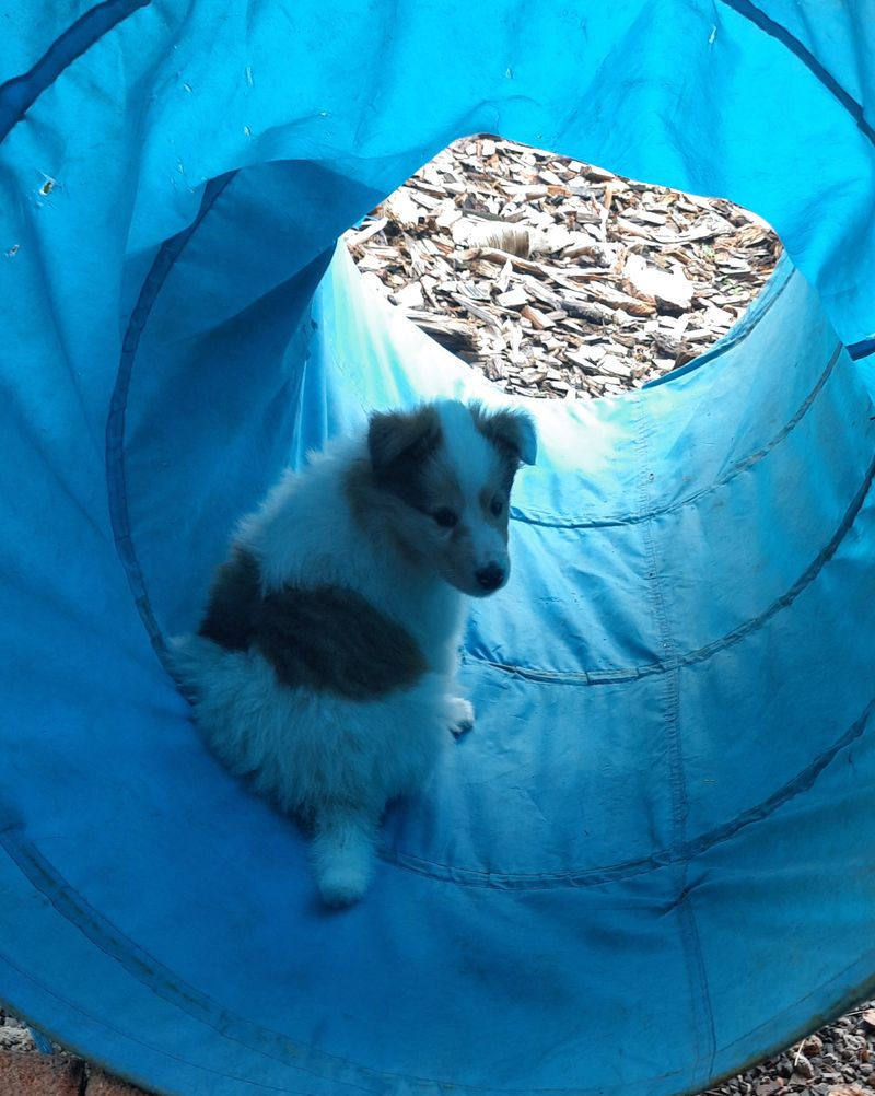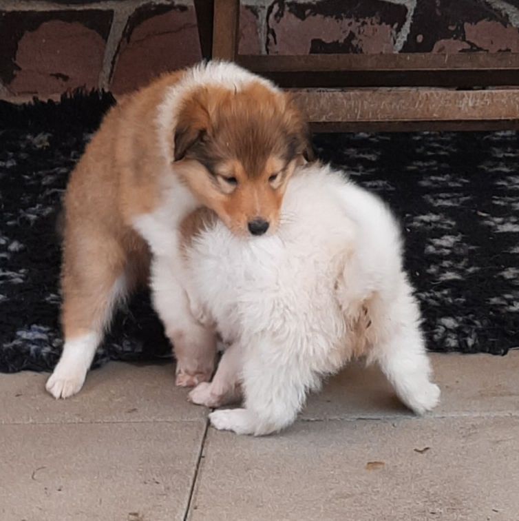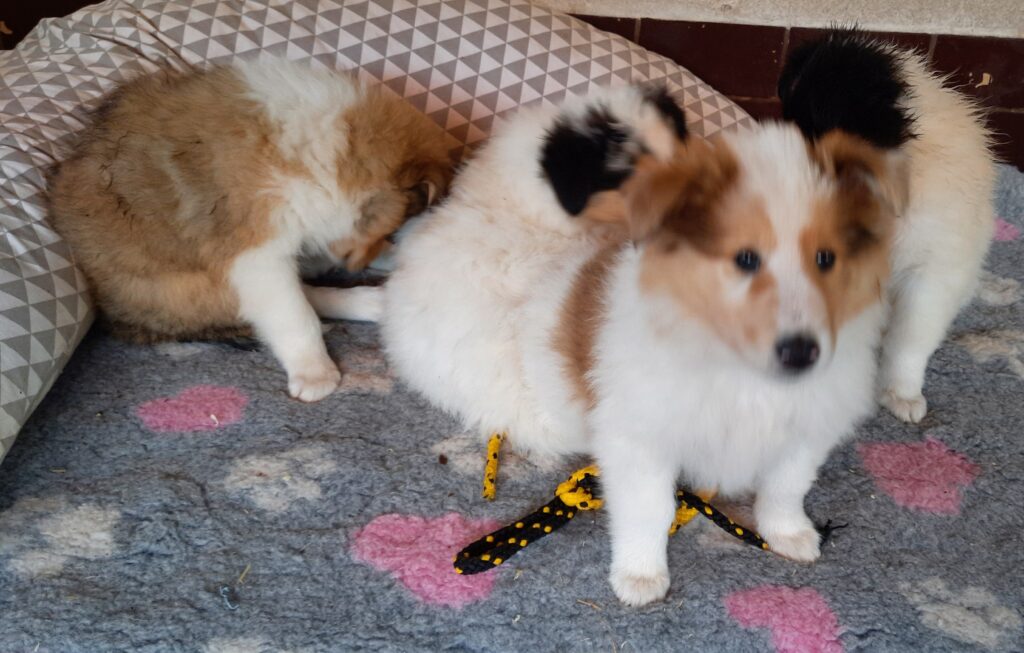 20.09.25 (41 Tage alt, fast 5 Wochen) Was soll ich sagen, … mich kriegt keiner ein 😉 :-P. Also hier kommt Silas, der große Weiße 😀 Wollte euch doch berichten was wir hier alles so durchmachen 😀 Also, den kleinen Garten oben hatten wir ja nun ein paar Tage in Beschlag genommen auch unser Futter inclusive Milchbar gab es draußen. Auch die großen Hunde waren bei uns die süße Linny hat super mit uns gespielt und auch IHREN Knochen geteilt. 🙂 Da war auch viel los, es kamen immer mal wieder neugierige Leute die dann streicheln wollten und so allerlei wissen wollten. Frauli ist ja da, die kann das regeln. aber heute war der Knaller wir sind in den großen Outdoor Garten gekommen. Das ist toll da und ganz viele Knochen gabs und unsere geliebe Geräusche Kiste war auch da. Was will man mehr… naja wenn du so fragst… FUTTER wäre nicht schlecht. 😀