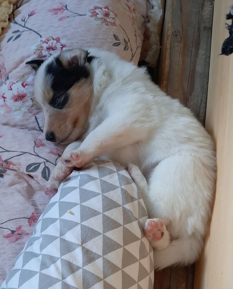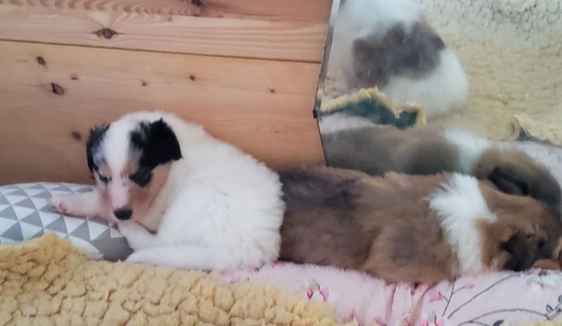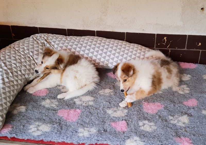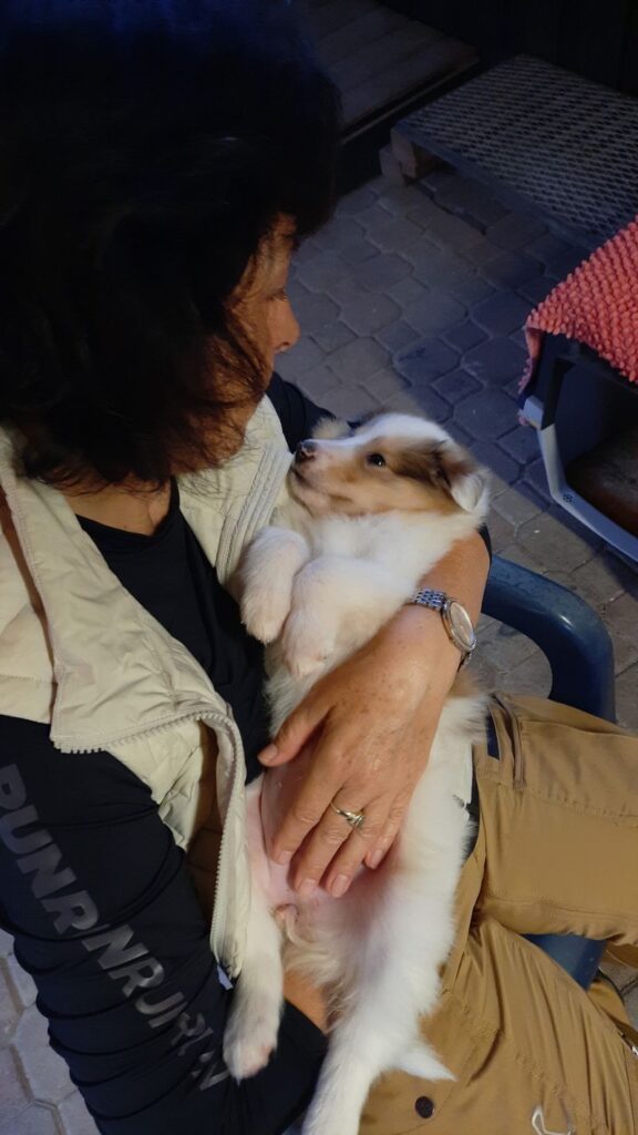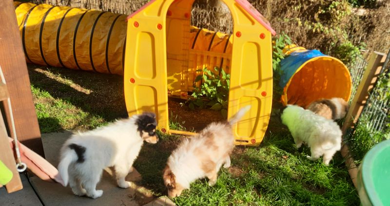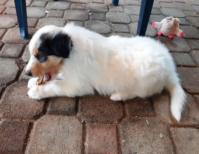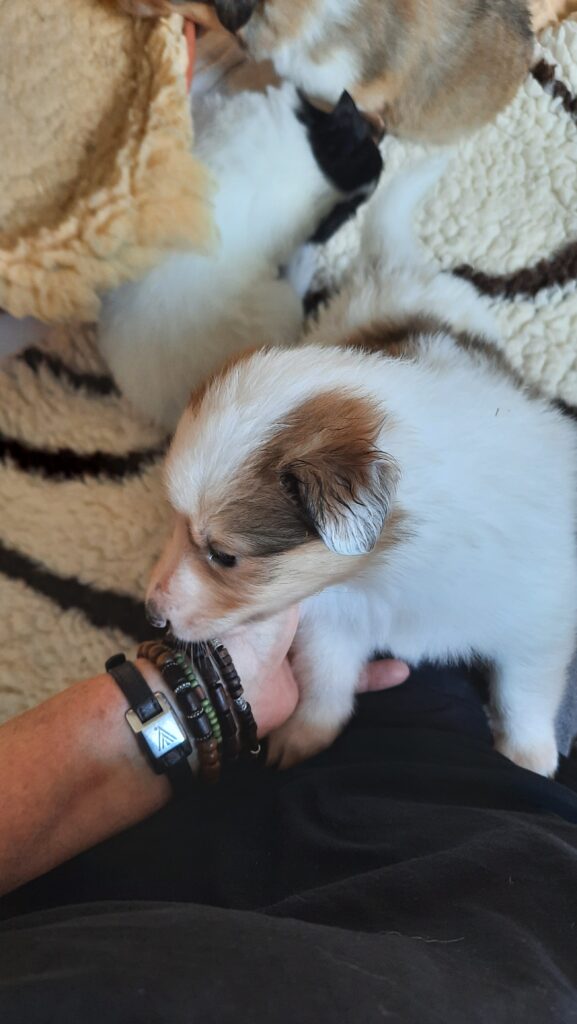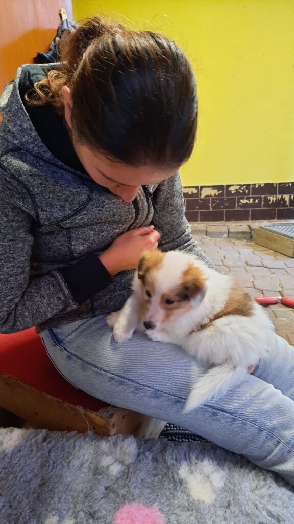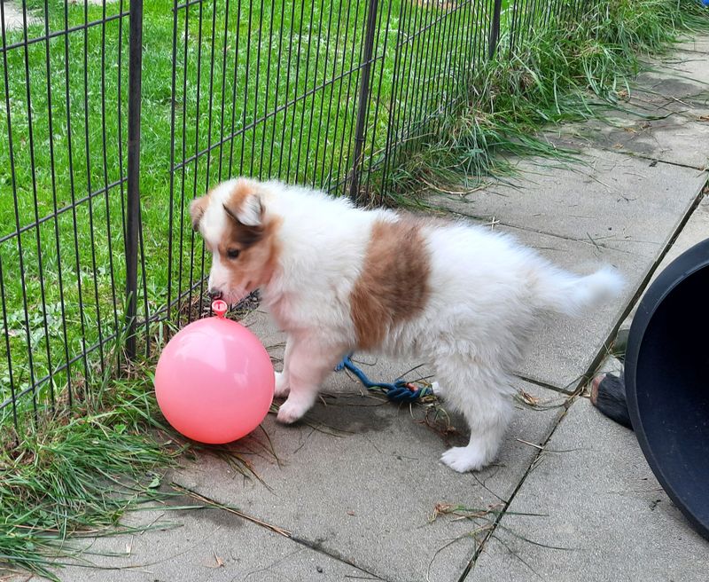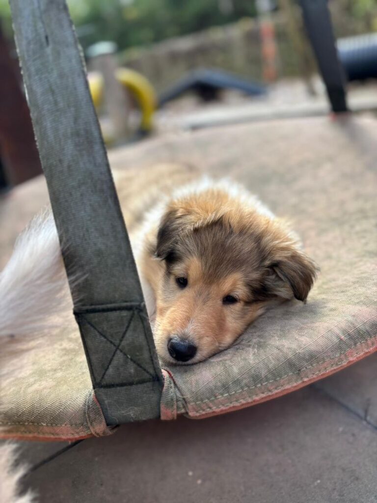 20.09.25 (41 Tage alt, fast 5 Wochen) Was soll ich sagen, … mich kriegt keiner ein 😉 :-P. Also hier kommt Silas, der große Weiße 😀 Wollte euch doch berichten was wir hier alles so durchmachen 😀 Also, den kleinen Garten oben hatten wir ja nun ein paar Tage in Beschlag genommen auch unser Futter inclusive Milchbar gab es draußen. Auch die großen Hunde waren bei uns die süße Linny hat super mit uns gespielt und auch IHREN Knochen geteilt. 🙂 Da war auch viel los, es kamen immer mal wieder neugierige Leute die dann streicheln wollten und so allerlei wissen wollten. Frauli ist ja da, die kann das regeln. aber heute war der Knaller wir sind in den großen Outdoor Garten gekommen. Das ist toll da und ganz viele Knochen gabs und unsere geliebe Geräusche Kiste war auch da. Was will man mehr… naja wenn du so fragst… FUTTER wäre nicht schlecht. 😀