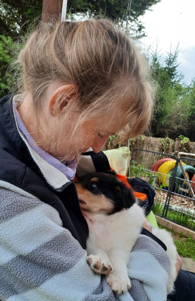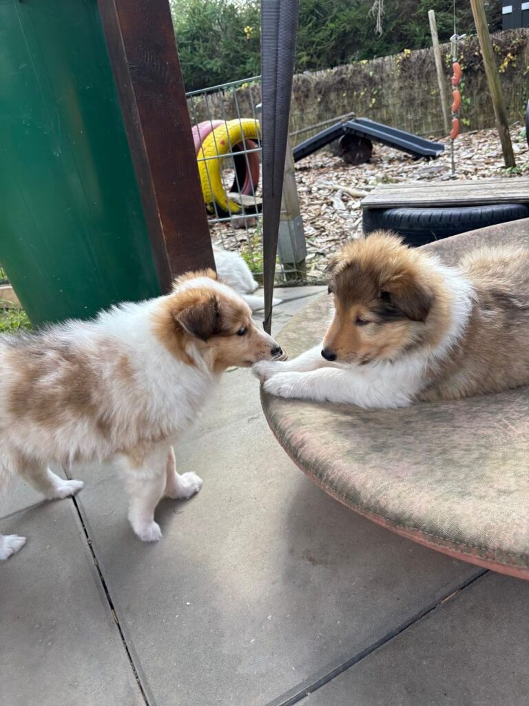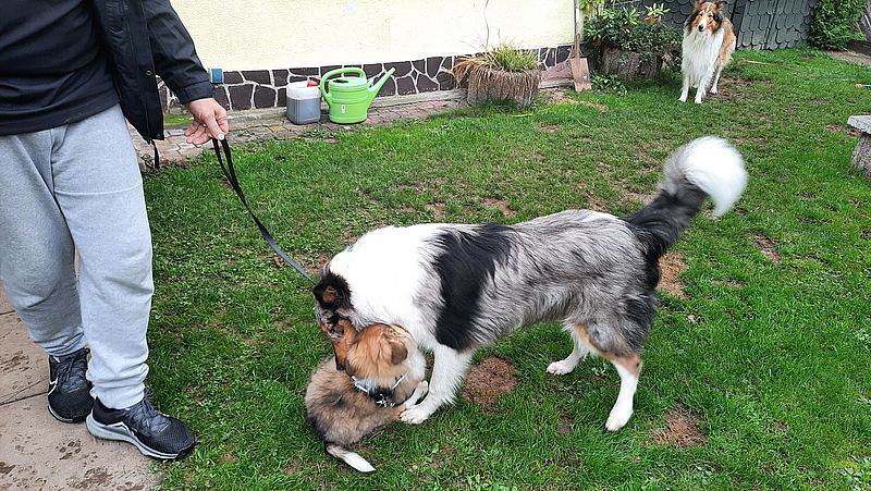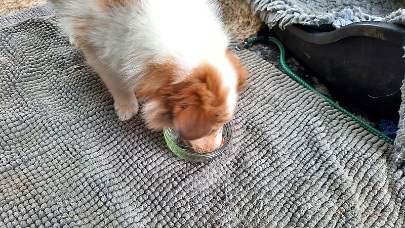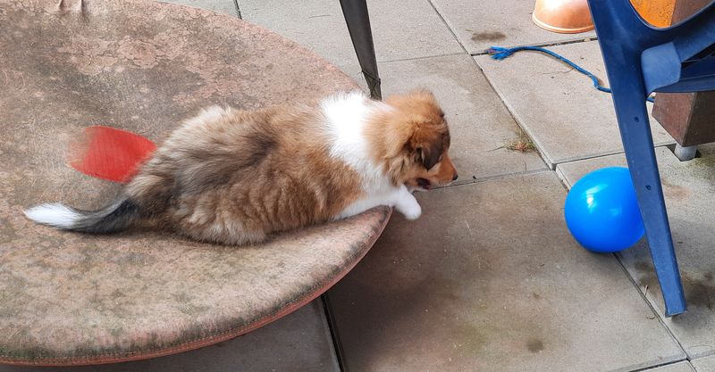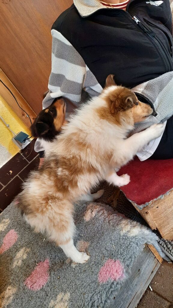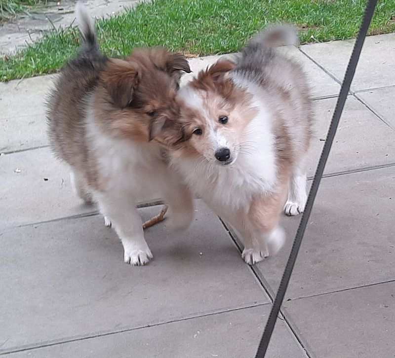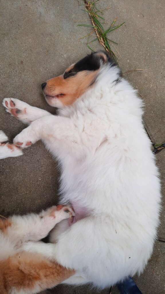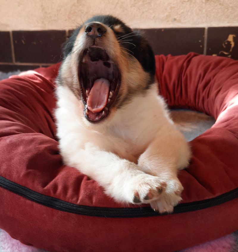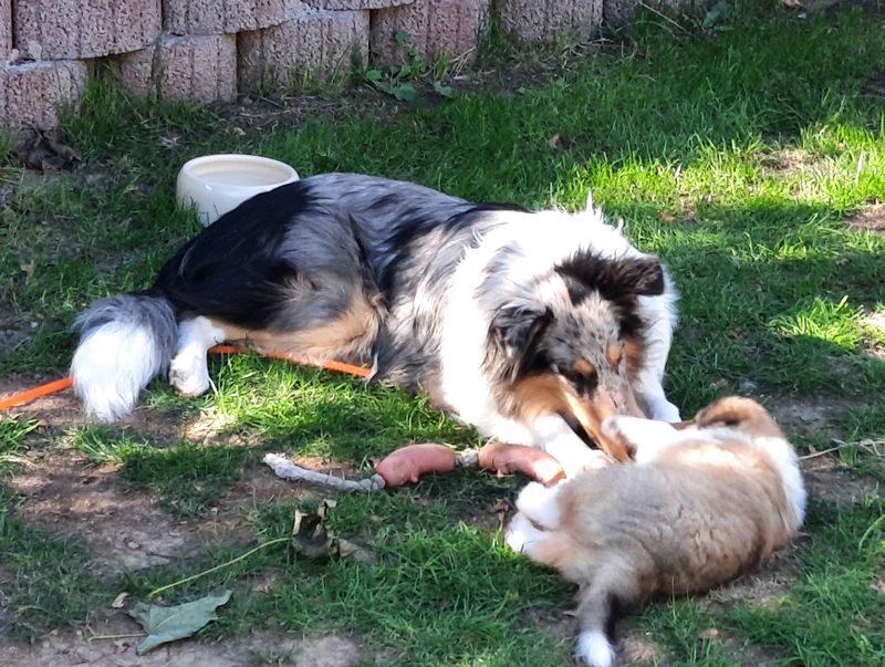 20.09.25 (41 Tage alt, fast 5 Wochen) Was soll ich sagen, … mich kriegt keiner ein 😉 :-P. Also hier kommt Silas, der große Weiße 😀 Wollte euch doch berichten was wir hier alles so durchmachen 😀 Also, den kleinen Garten oben hatten wir ja nun ein paar Tage in Beschlag genommen auch unser Futter inclusive Milchbar gab es draußen. Auch die großen Hunde waren bei uns die süße Linny hat super mit uns gespielt und auch IHREN Knochen geteilt. 🙂 Da war auch viel los, es kamen immer mal wieder neugierige Leute die dann streicheln wollten und so allerlei wissen wollten. Frauli ist ja da, die kann das regeln. aber heute war der Knaller wir sind in den großen Outdoor Garten gekommen. Das ist toll da und ganz viele Knochen gabs und unsere geliebe Geräusche Kiste war auch da. Was will man mehr… naja wenn du so fragst… FUTTER wäre nicht schlecht. 😀