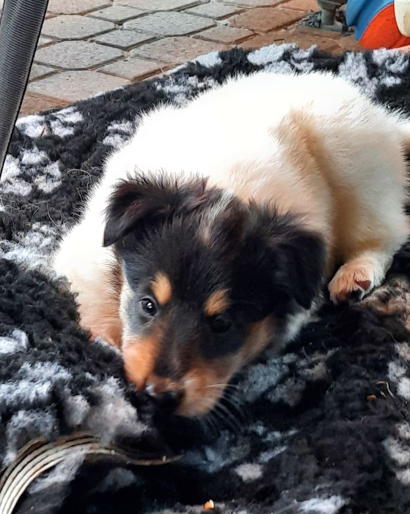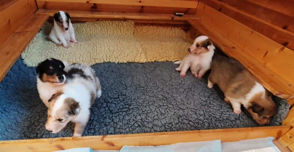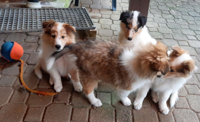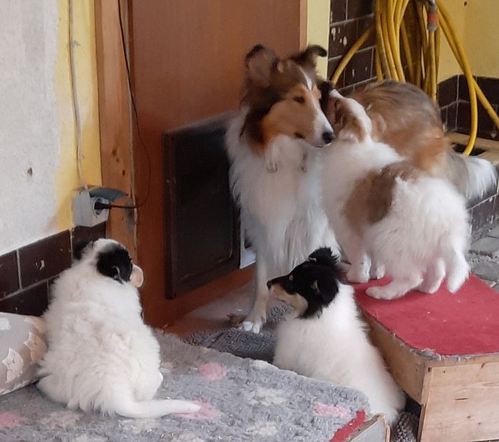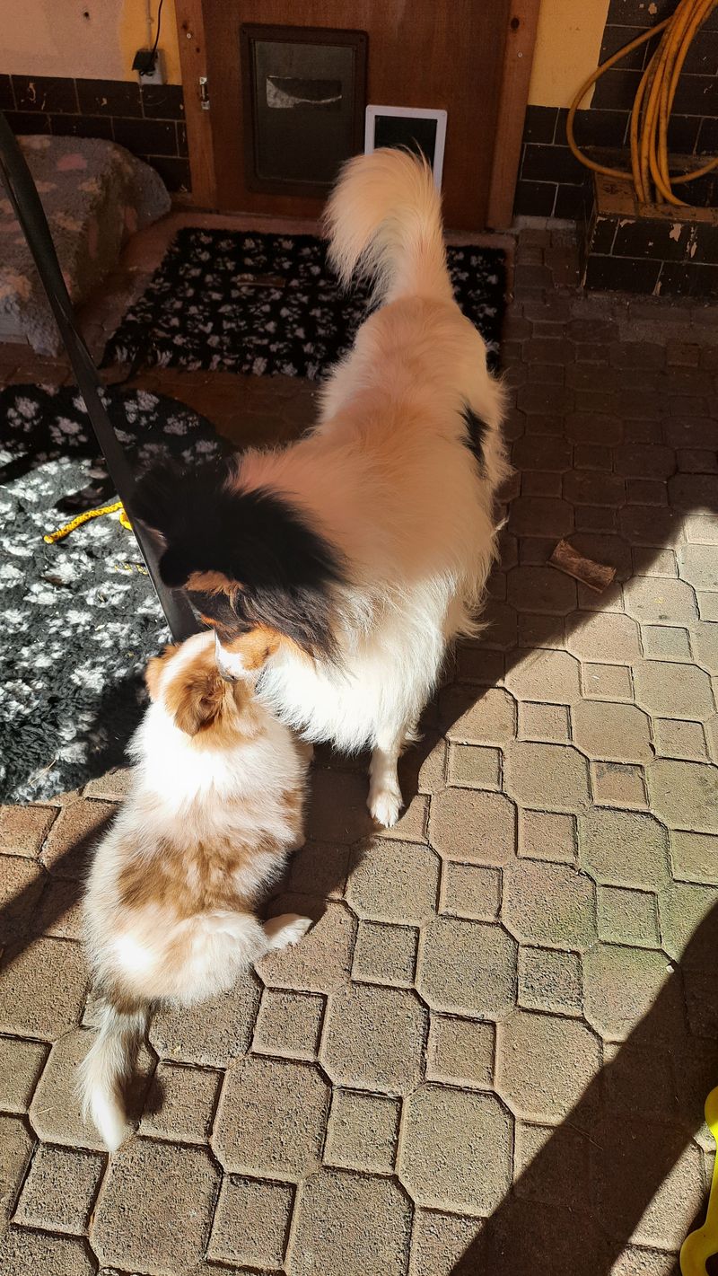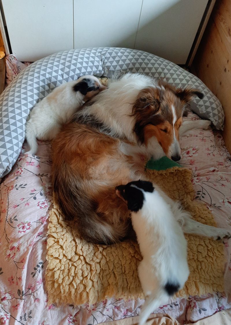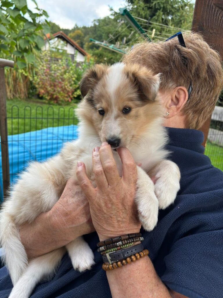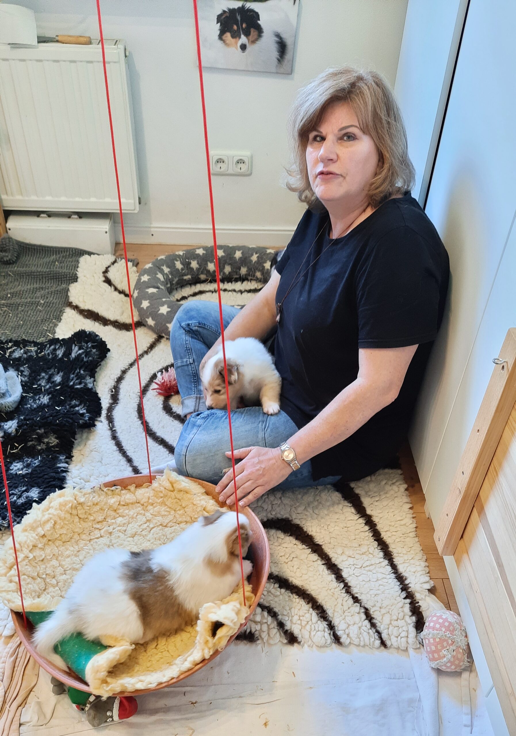 15.09.25 ( 36 Tage alt, 4 Wochen ) Huhu ich bin´s wieder der Silas, hat mich noch keiner überholt. 😉 Wollte euch doch von unseren letzten Tagen berichten, hier ist ja ziemlich viel passiert. Angefangen von unserer Toilette, die sich seltsamerweise in Heu verwandelt hat und dann am nächsten Tag wurde unsere Box geöffnet, das war vielleicht aufregend, wie ihr ja gesehen habt hatte ich gehörigen Respekt davor, die anderen sind ja gleich raus ins Getümmel 🙂 Dann hatten wir Besuch von Fraulis Freudin, die kommt ja öfter zum Knuddeln und am nächsten Tag waren hier ganz liebe Leute für Joey. Aber die hatten ihr Schaff, denn Yuki wollte unbedingt ihr Hund werden. Sie hat sich die ganzen 3,5 Stunden nicht von den Leuten wegbewegt und war dann abends im Koma 😀 Naja, man kann nicht alles haben. Am nächsten Tag kam dann Silas Frauli, sie hat ja unseren Halbbruder/Onkel Keanu schon von Mama. Tja, und im Garten waren auch schon fast alle. Aber so toll fanden wir es da nicht, weil es so windig war. So, nun zeig ich euch noch die Fotos dazu und sage bis demnächst, vielleicht wieder mit mir euer Silas . 😉