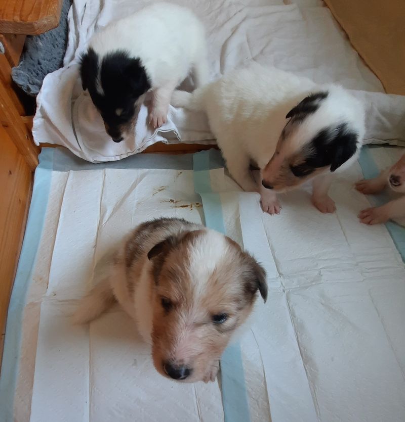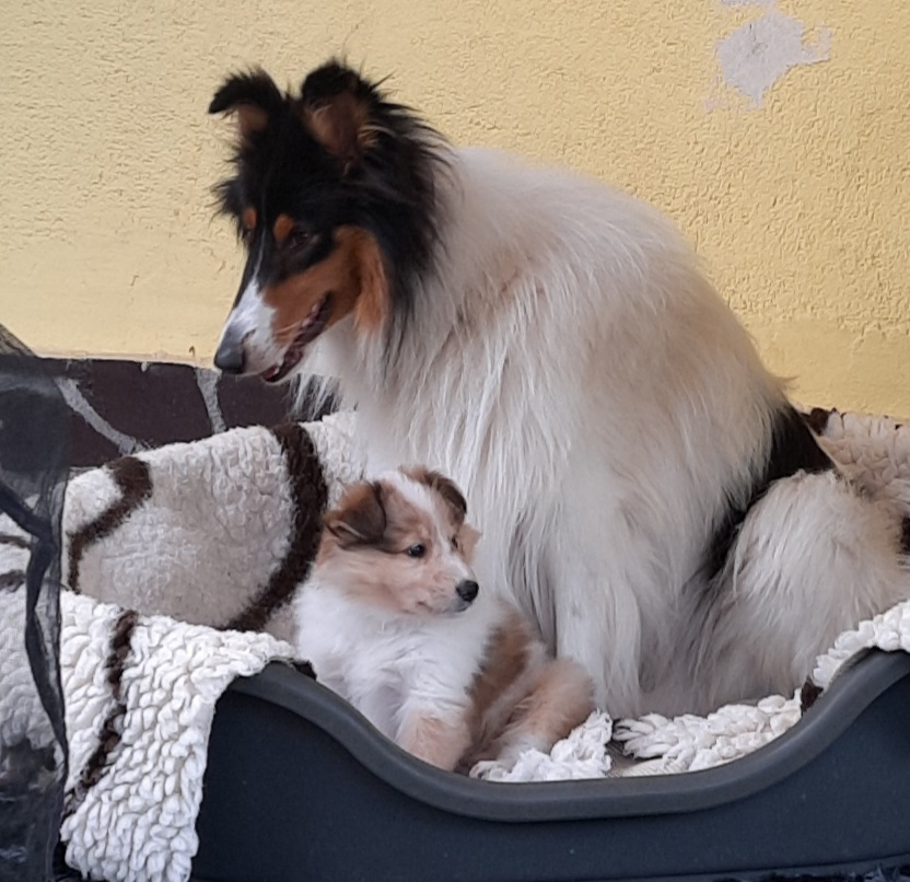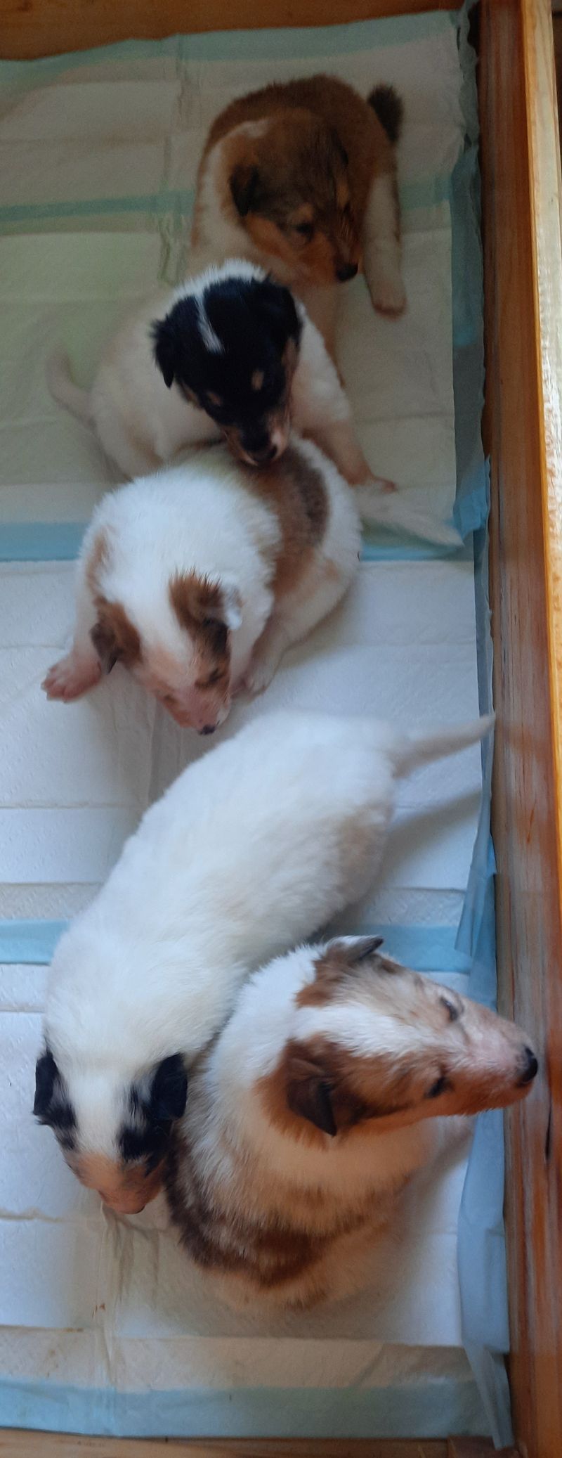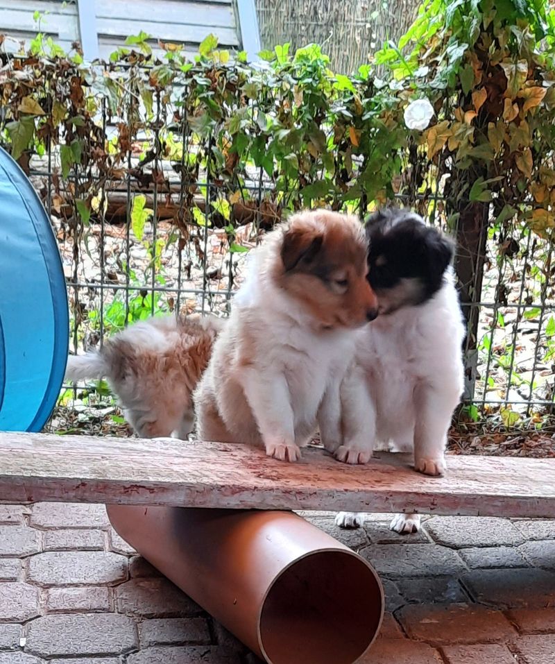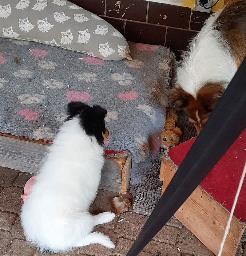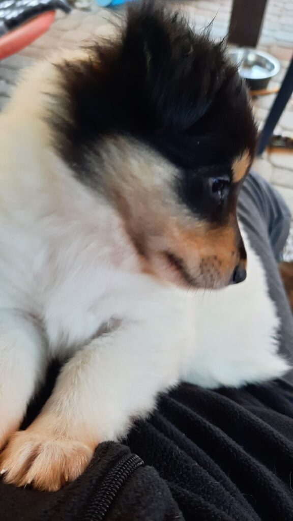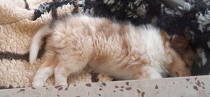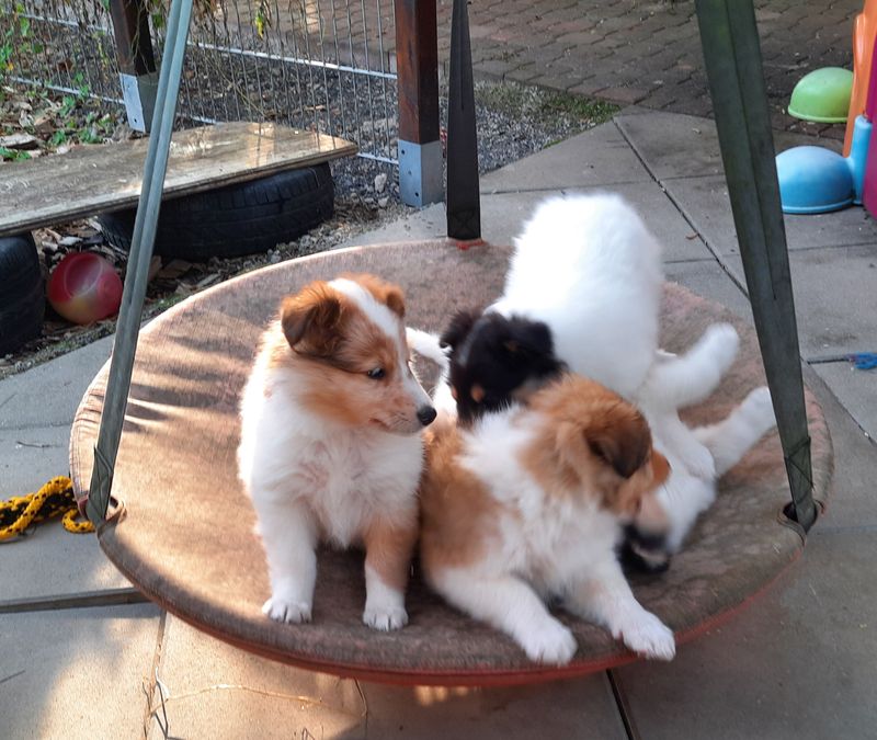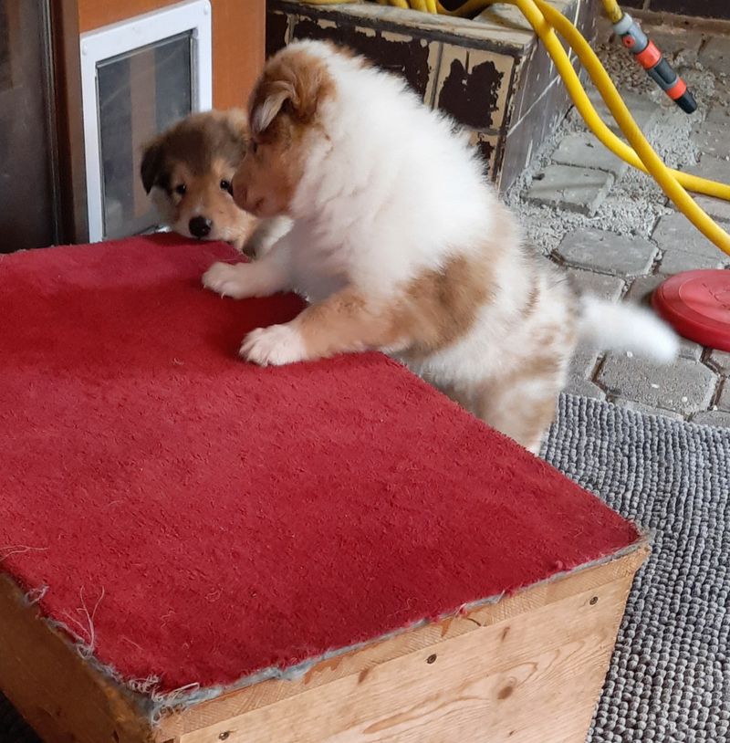 15.09.25 ( 36 Tage alt, 4 Wochen ) Huhu ich bin´s wieder der Silas, hat mich noch keiner überholt. 😉 Wollte euch doch von unseren letzten Tagen berichten, hier ist ja ziemlich viel passiert. Angefangen von unserer Toilette, die sich seltsamerweise in Heu verwandelt hat und dann am nächsten Tag wurde unsere Box geöffnet, das war vielleicht aufregend, wie ihr ja gesehen habt hatte ich gehörigen Respekt davor, die anderen sind ja gleich raus ins Getümmel 🙂 Dann hatten wir Besuch von Fraulis Freudin, die kommt ja öfter zum Knuddeln und am nächsten Tag waren hier ganz liebe Leute für Joey. Aber die hatten ihr Schaff, denn Yuki wollte unbedingt ihr Hund werden. Sie hat sich die ganzen 3,5 Stunden nicht von den Leuten wegbewegt und war dann abends im Koma 😀 Naja, man kann nicht alles haben. Am nächsten Tag kam dann Silas Frauli, sie hat ja unseren Halbbruder/Onkel Keanu schon von Mama. Tja, und im Garten waren auch schon fast alle. Aber so toll fanden wir es da nicht, weil es so windig war. So, nun zeig ich euch noch die Fotos dazu und sage bis demnächst, vielleicht wieder mit mir euer Silas . 😉