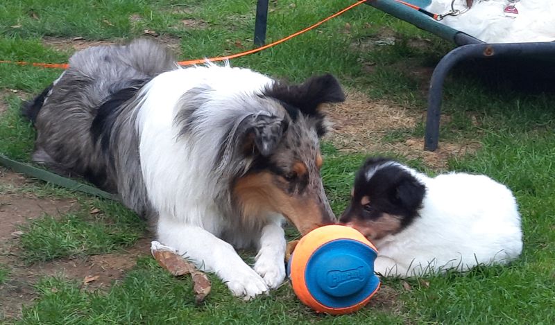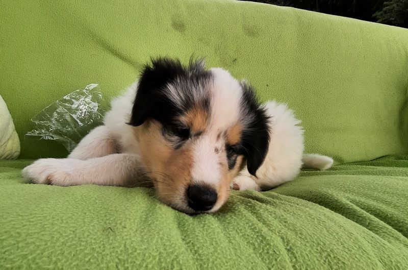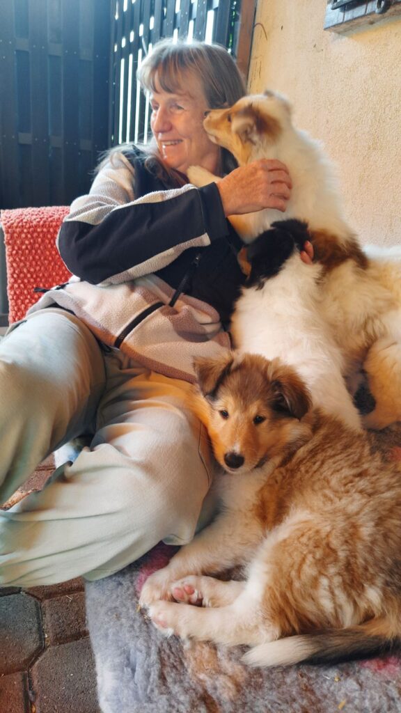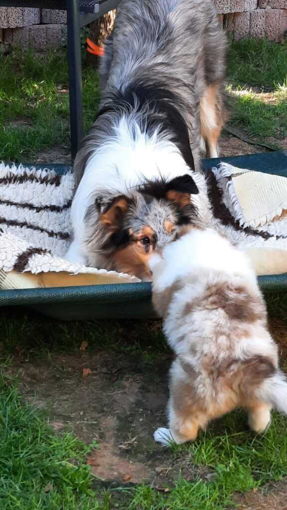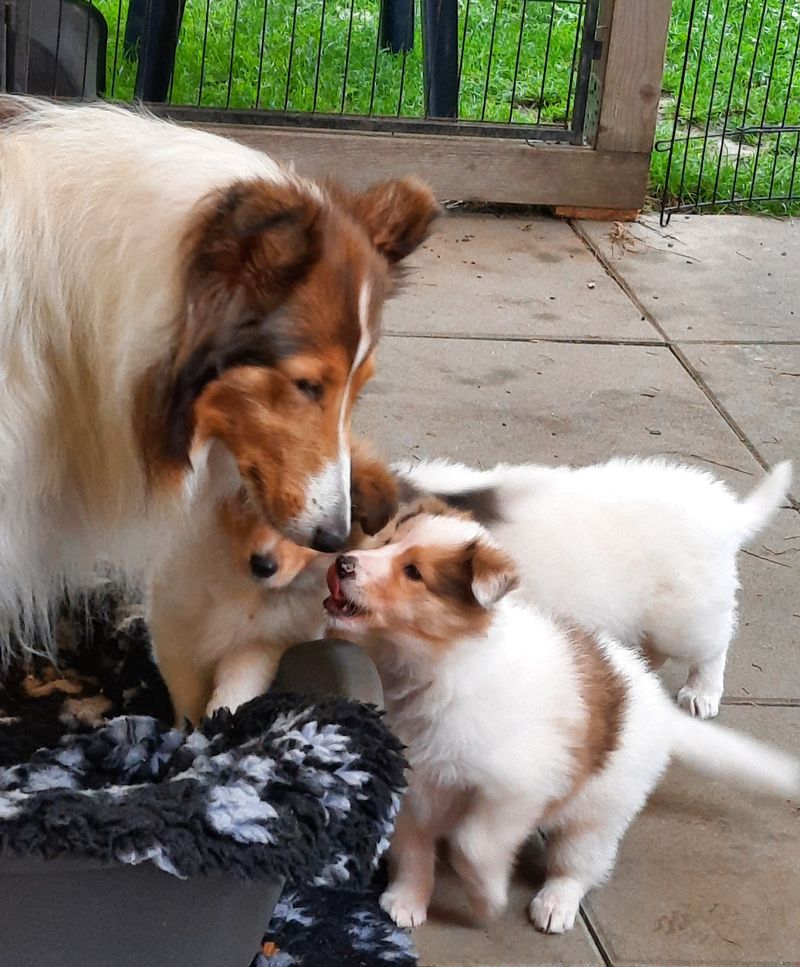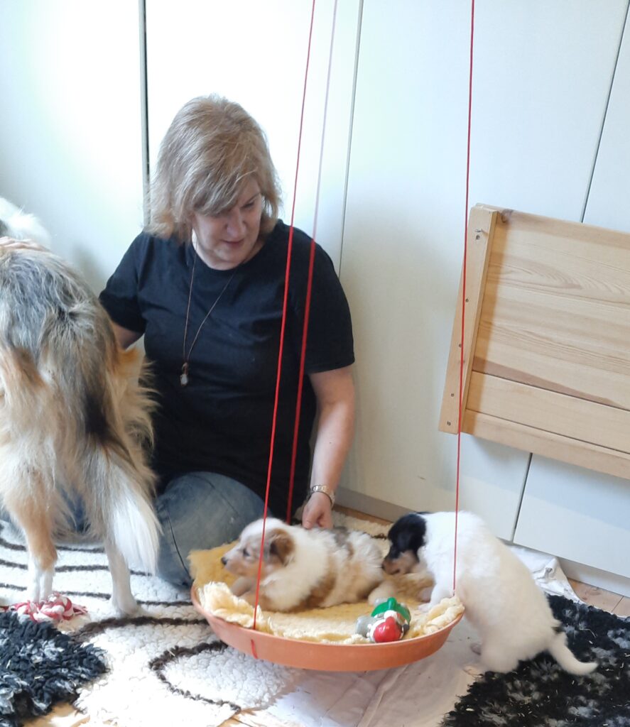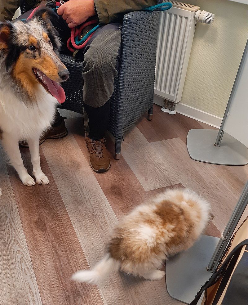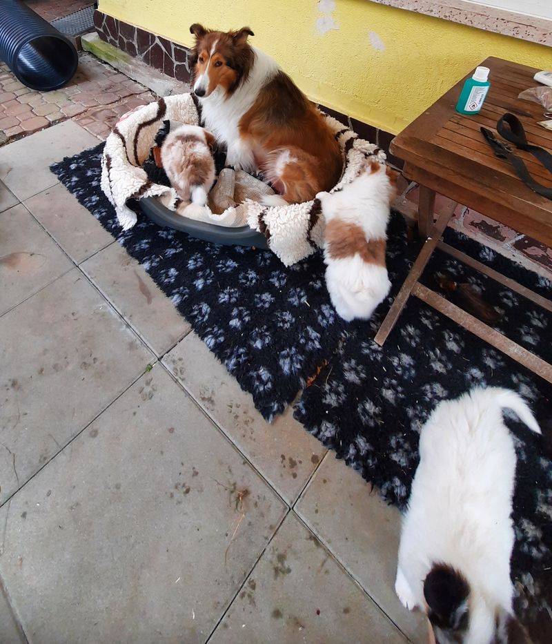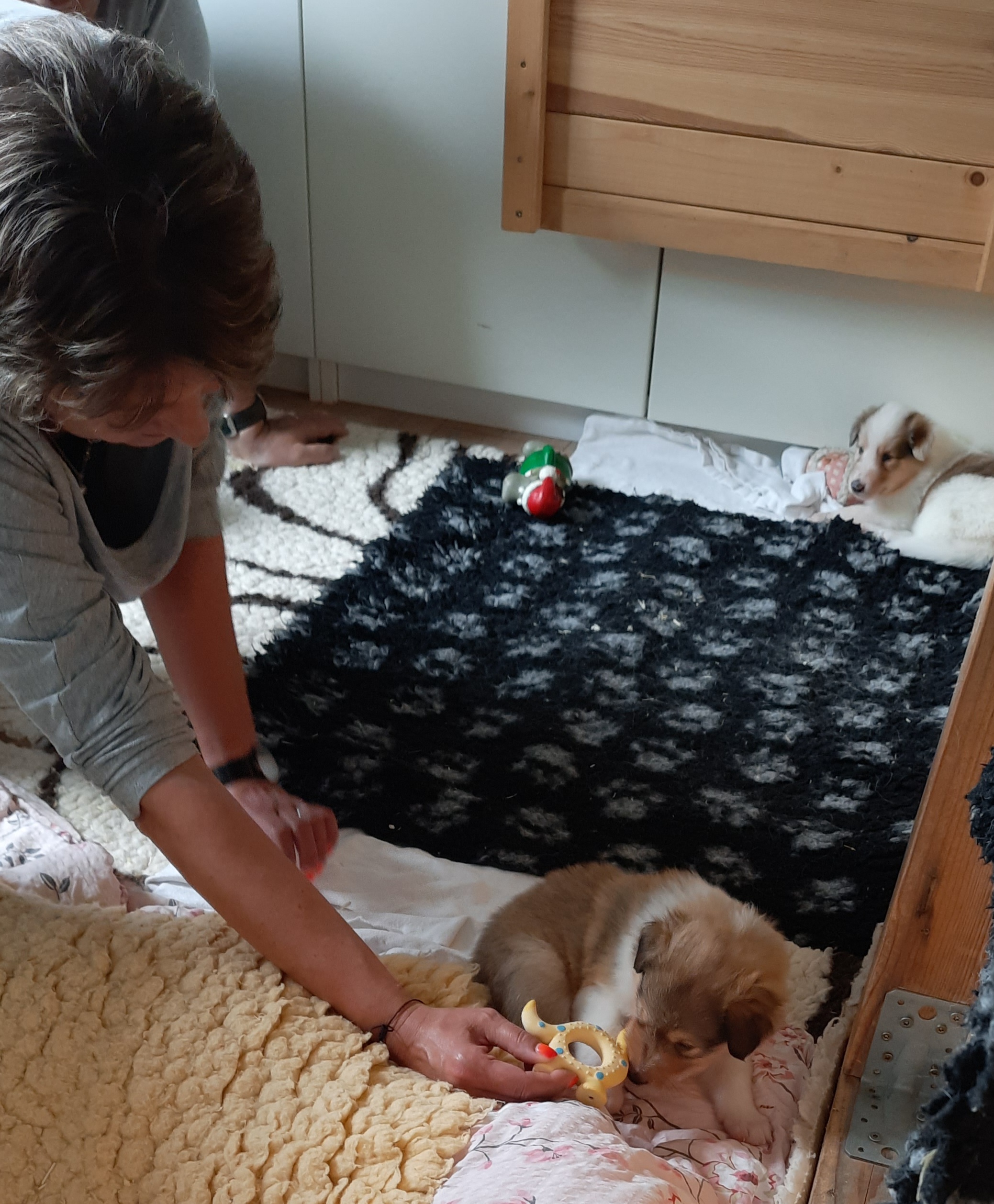 15.09.25 ( 36 Tage alt, 4 Wochen ) Huhu ich bin´s wieder der Silas, hat mich noch keiner überholt. 😉 Wollte euch doch von unseren letzten Tagen berichten, hier ist ja ziemlich viel passiert. Angefangen von unserer Toilette, die sich seltsamerweise in Heu verwandelt hat und dann am nächsten Tag wurde unsere Box geöffnet, das war vielleicht aufregend, wie ihr ja gesehen habt hatte ich gehörigen Respekt davor, die anderen sind ja gleich raus ins Getümmel 🙂 Dann hatten wir Besuch von Fraulis Freudin, die kommt ja öfter zum Knuddeln und am nächsten Tag waren hier ganz liebe Leute für Joey. Aber die hatten ihr Schaff, denn Yuki wollte unbedingt ihr Hund werden. Sie hat sich die ganzen 3,5 Stunden nicht von den Leuten wegbewegt und war dann abends im Koma 😀 Naja, man kann nicht alles haben. Am nächsten Tag kam dann Silas Frauli, sie hat ja unseren Halbbruder/Onkel Keanu schon von Mama. Tja, und im Garten waren auch schon fast alle. Aber so toll fanden wir es da nicht, weil es so windig war. So, nun zeig ich euch noch die Fotos dazu und sage bis demnächst, vielleicht wieder mit mir euer Silas . 😉