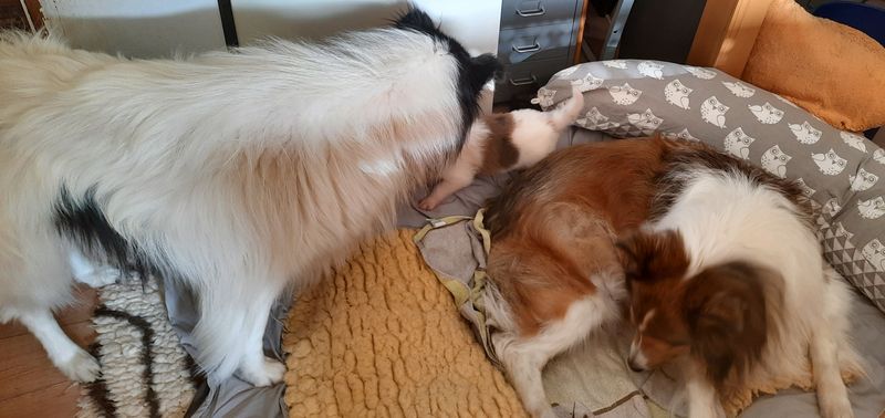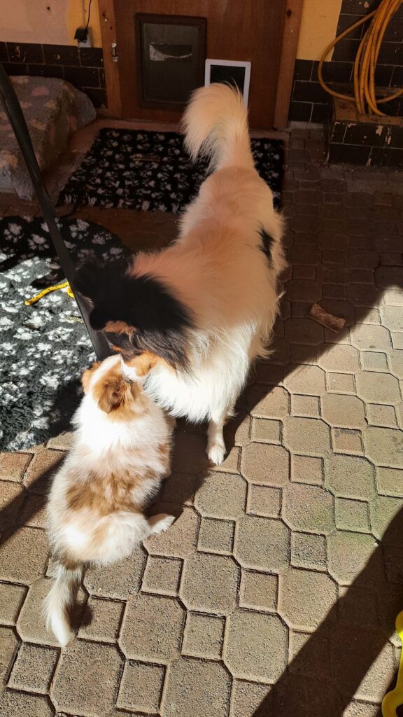 03.10.25 (54 Tage alt , fast 7 Wochen) Halloooo, hier kommt jetzt der Joey zu Wort, muss ja auch mal was erzählen dürfen. Außerdem sind wir alle viel zu schwer sagt Frauli… das heißt dann wohl, dass wir ab jetzt auf Diat kommen, oder??? Na das wird was werden. Bin froh wenn ich dann ausziehe, da gibt es bestimmt mehr zu futtern. 😛 Im Moment sind wir hier schwer beschäftigt, wir müssen bis zum Auszug der ja bald ansteht, nämlich ich in 8 Tagen und Silas in 10 Tagen müssen wir hier den Baumstamm klein und kurz bekommen. Die Mädels schaffen das ja nicht alleine, denkste doch nicht etwa 😀 Wir hatten übrigens wieder viel Besuch die Woche und wenn alles klappt, (darf ich eigentlich noch nicht erzählen) dann hat Yuki auch ihre eigene Familie gefunden. Aber… pssst bitte nicht weiter erzählen. Sonst gibts Ärger mit der Regierung 😀 So, ich sag dann mal noch ein schönes Wochenende und alles liebe eurer Joey 🙂