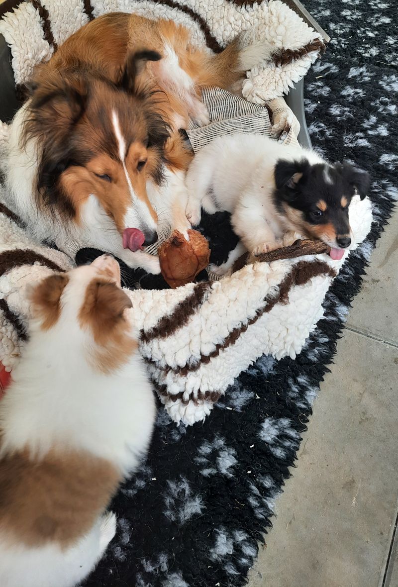 29.09.25 (50 Tage alt, 6 Wochen) Huhu hier ist dieses Mal Obi-Wan, endlich hat mein Bruder mich auch mal rangelassen. 🙂 Also hier macht es immer mehr Spaß mit meinen Geschwistern zu toben und die Welt zu erkunden und wenn dann noch unsere große Schwester Mina oder die Linny dabei sind dann ist hier richtig Remmidemmi angesagt. Wir bekommen jetzt auch schon wie die Großen Hähnchenhälse zu fressen, da kannste mal sehen wie wir die wegschnabbeln. 😀 So jetzt zeig ich euch noch ein paar süße Aufnahmen von uns. Ach fast hätte ich es vergessen, ich hatte gestern wieder ganz lieben Besuch und Frauli hat ein Geschenk bekommen 🙂 Tschüssi eurer Obi-Wan 🙂