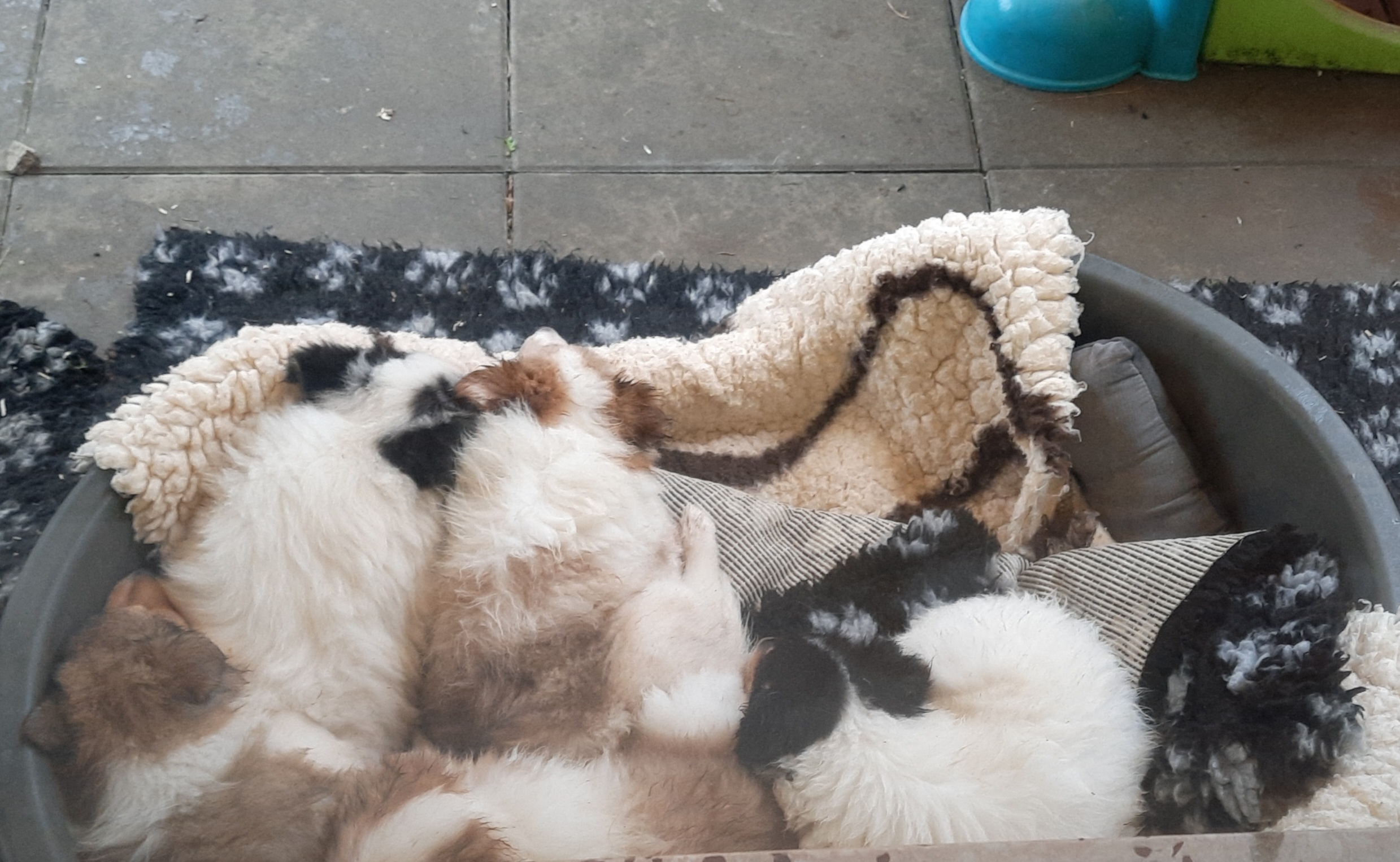 Sie hat ja auch gute Teamarbeit bewiesen, ohne sie hätte ich es wohl bei diesen Brocken nicht geschafft. Aber jetzt können die Krümel wachsen, ist mir schnurzpiepe, sind ja nicht mehr in meinem Bauch 😉 Hier kommen nun die ersten Fotos dieser süßen Bande, die übrigens sehr lieb und ruhig sind. Wir kennen da andere 😀