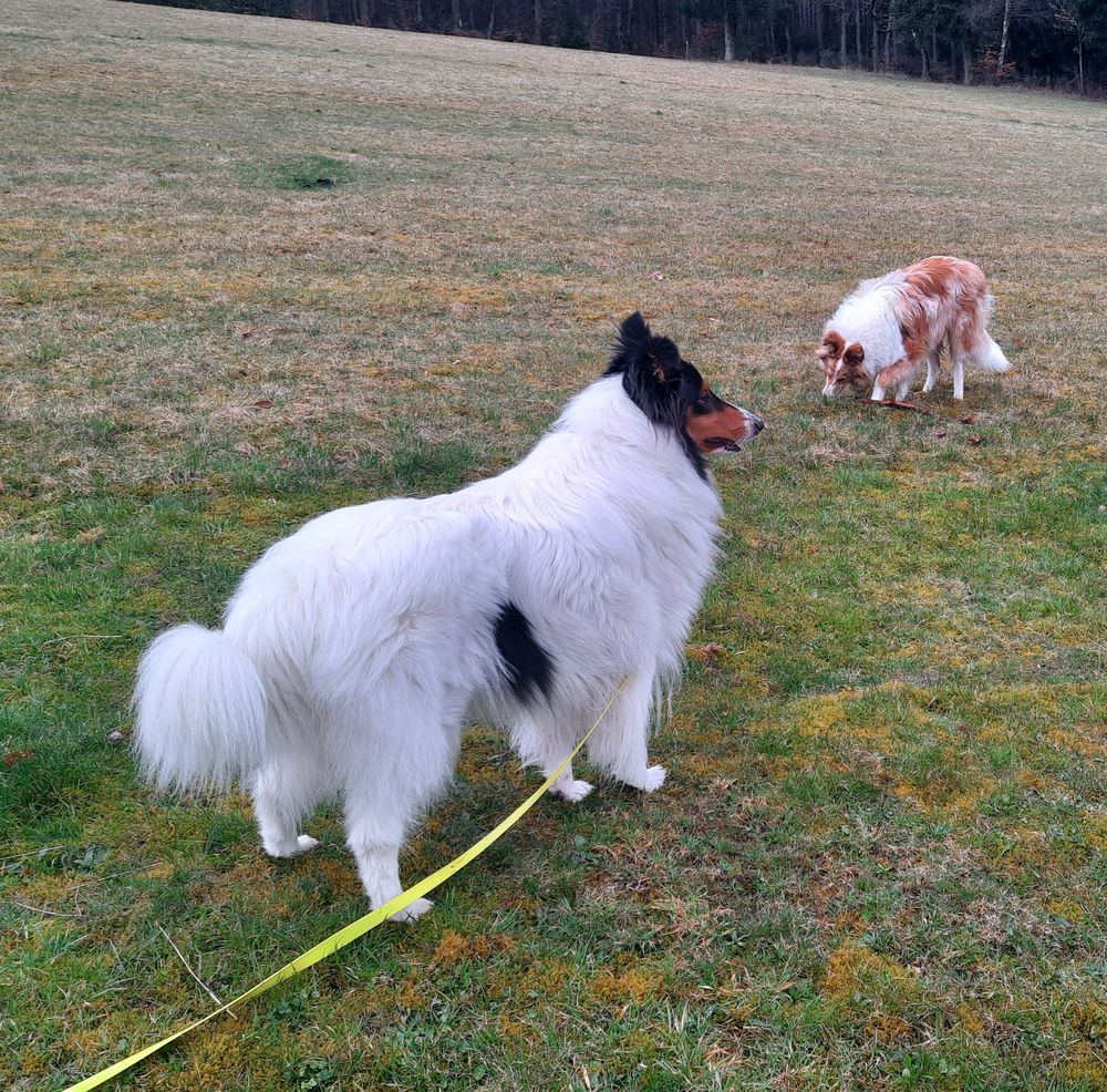 Nach einer kurzen Nacht und vielen Gedanken wie es mit Mina weiter gehen soll, kam eine Freundin und sagte, sofort zum Besamen ansonsten verschenken wir wieder ein Jahr. Was wir dann auch taten. Auf diesem Wege konnten wir gleich auch mal checken, ob bei Mina evtl. Anomalien vorlagen, weshalb es nie klappte, aber alles bestens und so haben wir sie am 18.02.26 besamt mit einem tollen Dark-Sable/White Rüden, ihr werdet es erfahren wenn der Schall positiv ausfällt. Wir werden um den 17.03. zum Schallen fahren.