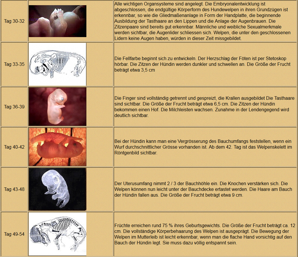 15.03.26 (26. Tag/4. Woche) Huhu ich bins die Mina, wollte euch mal zeigen was Frauli vergessen hatte. Vorgeburtliche Entwicklung der Welpen Hier könnt ihr nachschauen, wo und in welchem Entwicklungsstatus sich bei mir die Krümel befinden. Ich finde das super schön illustriert. Aber nicht Frauli verraten. Mir geht es übrigens sehr gut, schlafe viel und ziehe mich oft in meine Kuschelecke zurück und beobachte nach innen 😉 LG. eure Mina bis bald, nur noch 4 mal schlafen. 😀