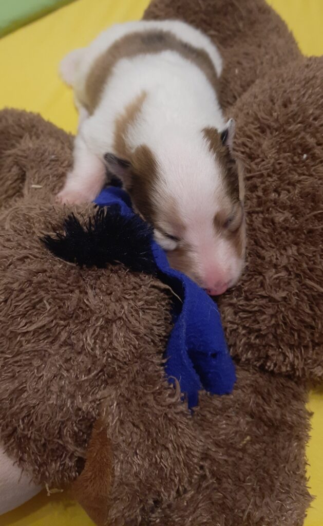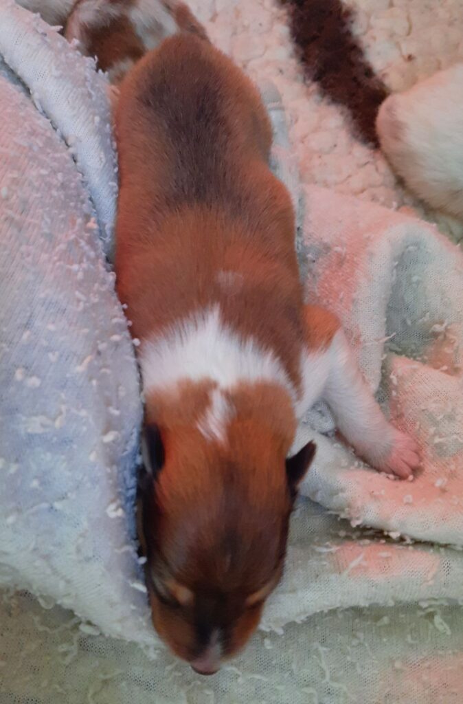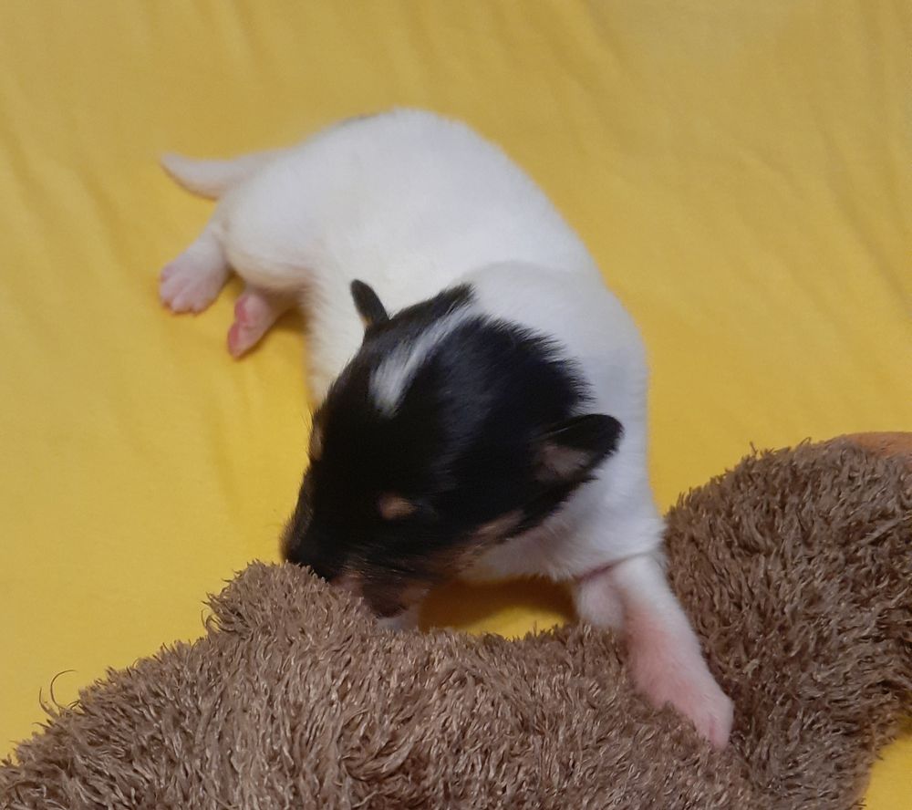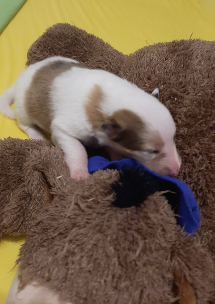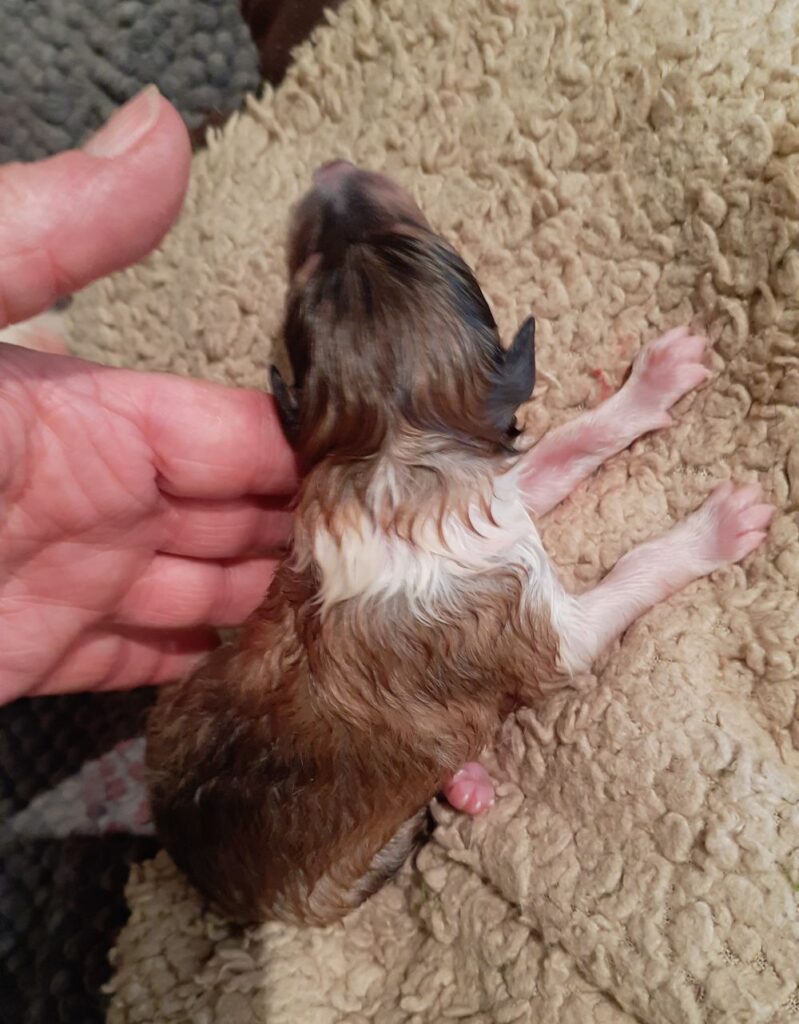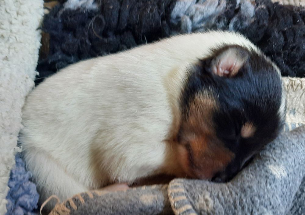 „2. Welpe “ Obi-Wan CHW/ Tricolor Rüde 8:04 Uhr 397 g (Löwe- Aszendent Löwe) und im chinesischen ein Holz Schlange ausgezogen und bleibt gaaaanz in der Nähe 🙂