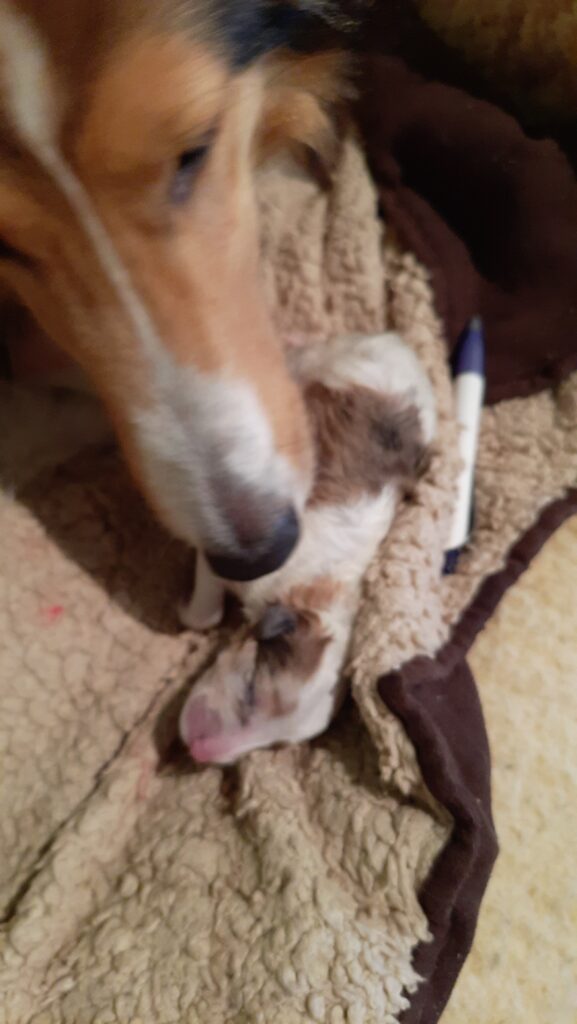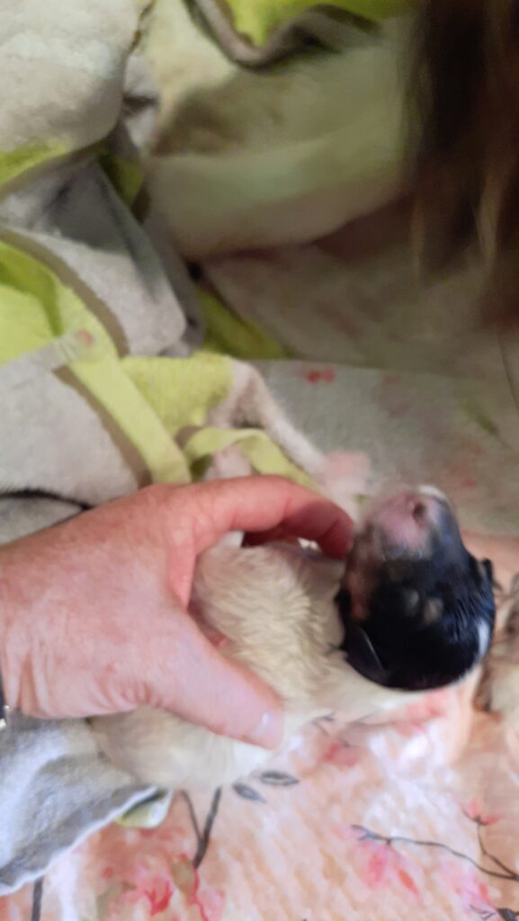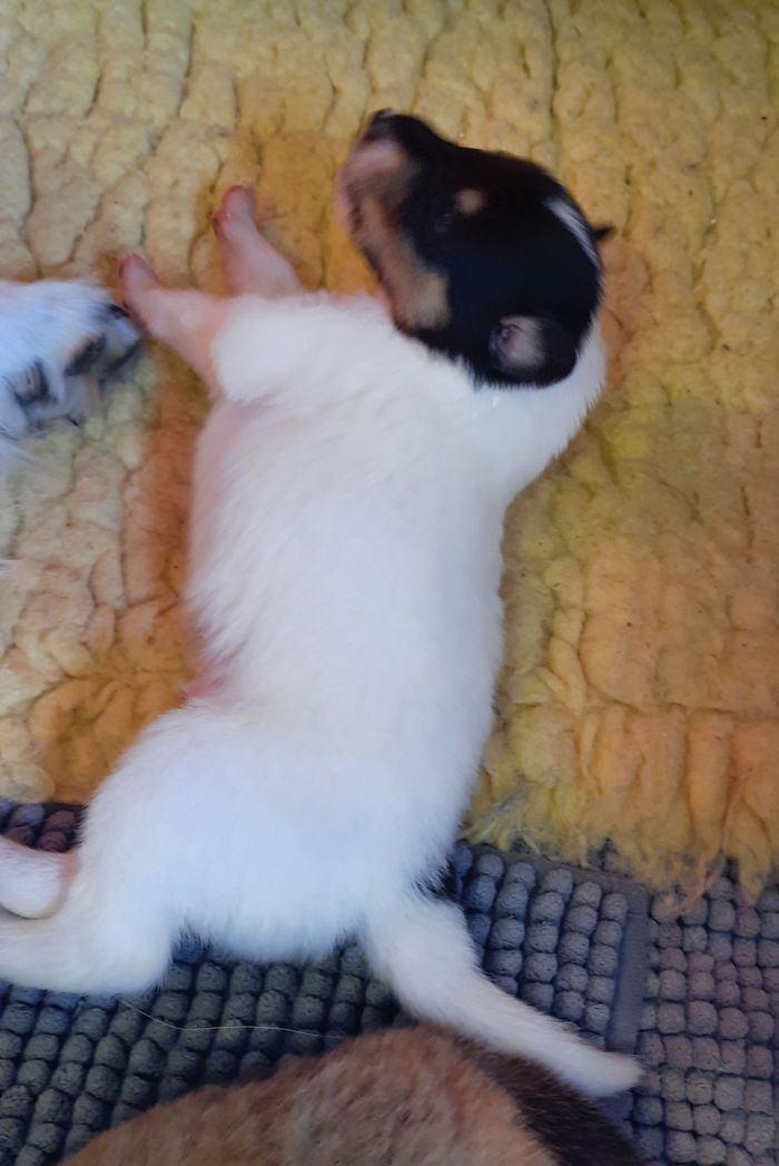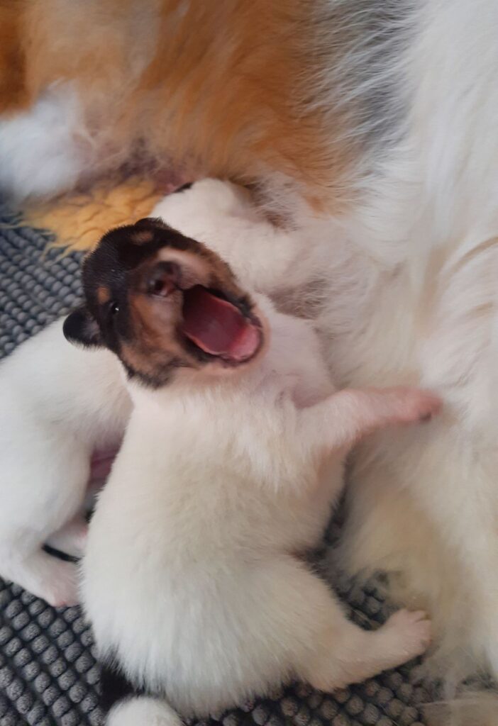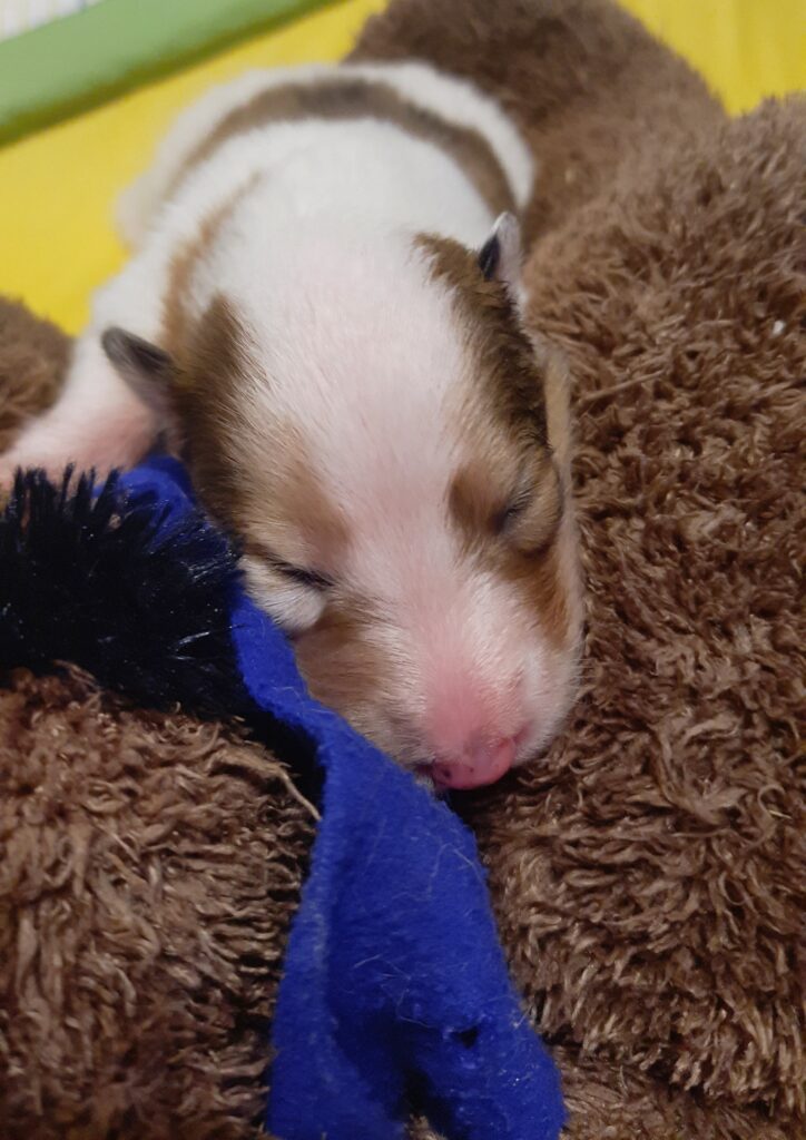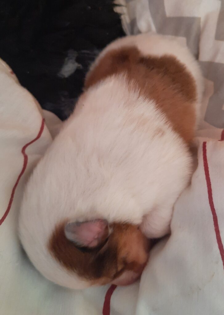 „2. Welpe “ Obi-Wan CHW/ Tricolor Rüde 8:04 Uhr 397 g (Löwe- Aszendent Löwe) und im chinesischen ein Holz Schlange ausgezogen und bleibt gaaaanz in der Nähe 🙂