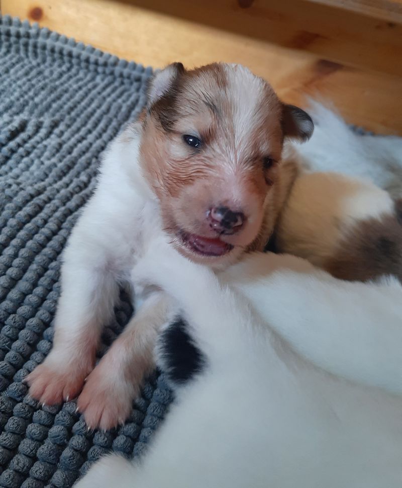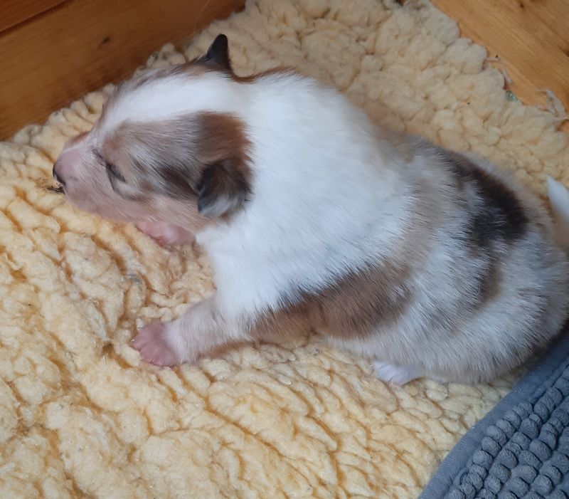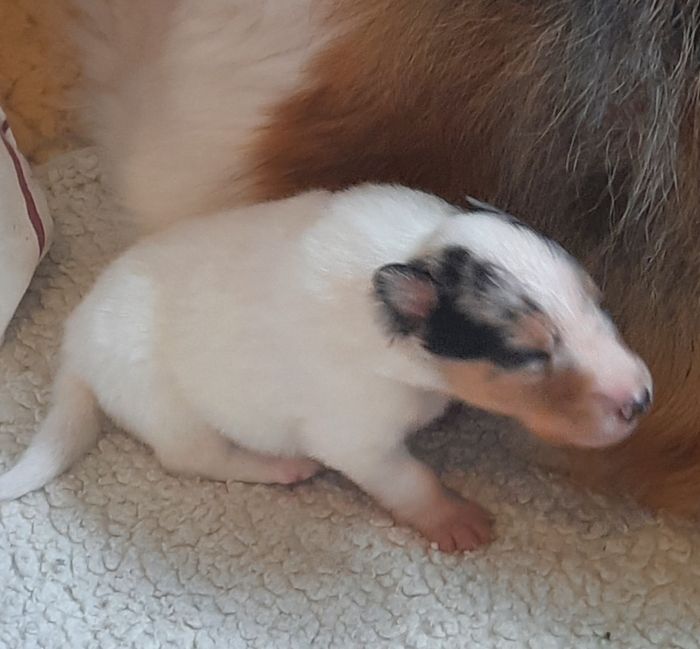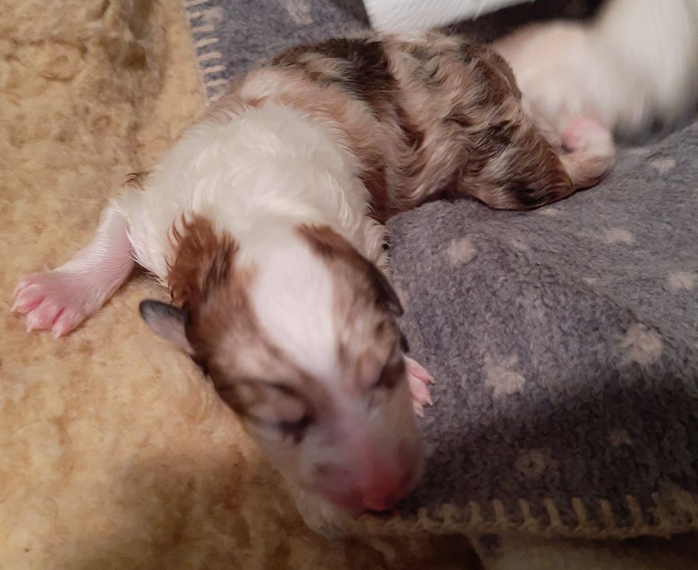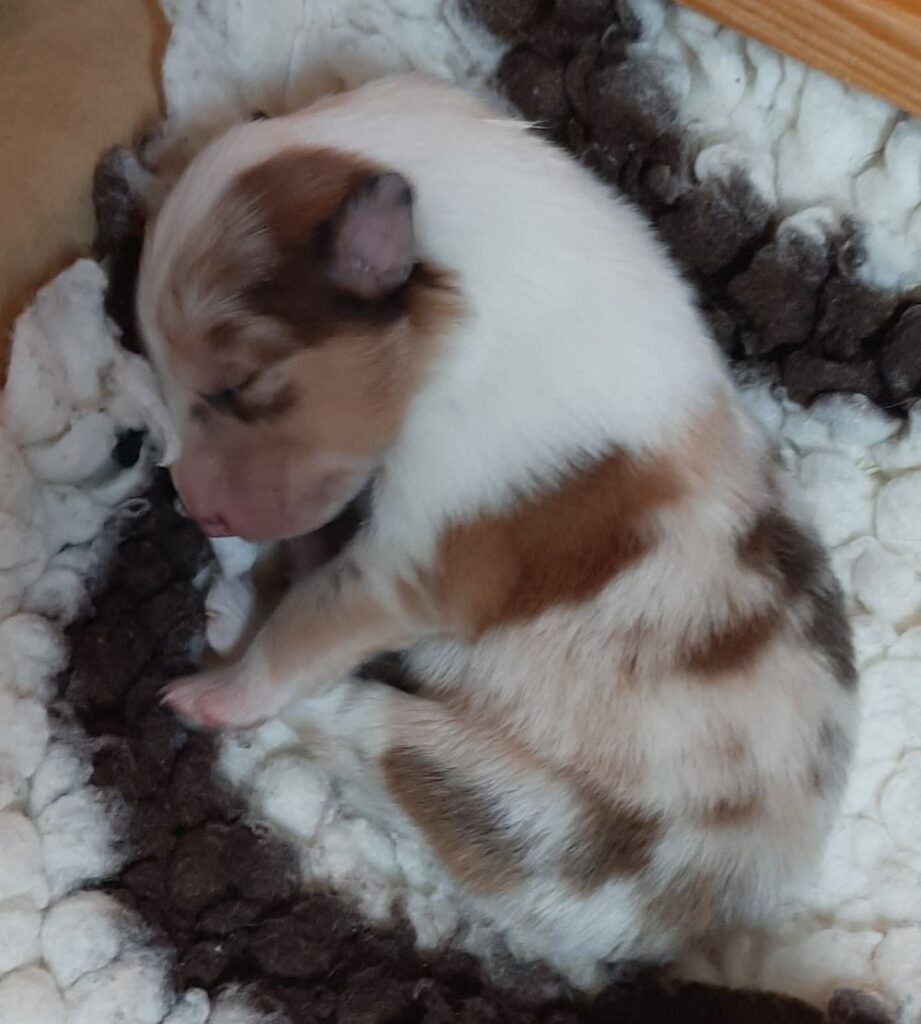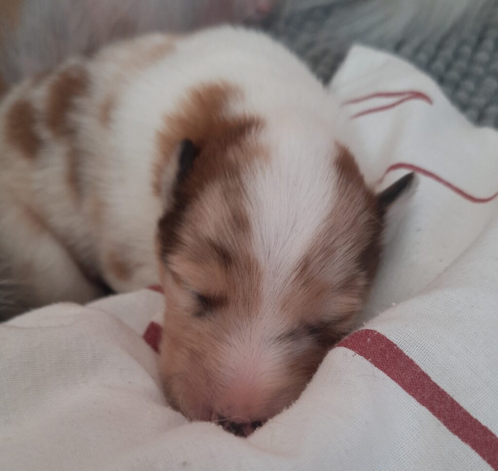 „ 5. Welpe“ O´my Sweetheart „Shuri“ Sable-Merle/Harlekin 11:30 Uhr Hündin 425 g (Löwe- Aszendent Jungfrau ) und im chinesischen Holz Schlange bleibt bei uns 🙂