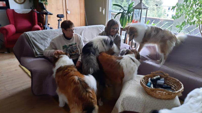 08.03.26 ( 14. Tag/ 3. Woche) Hallihallo, nun ist auch Jana wieder dran, wir gehen in die 3. Woche und haben jetzt noch 12 Tage bis wir es genau wissen. So wie es im Moment aussieht, scheint sie aufgenommen zu haben. Letztens hat sie sich gegen Tara´s Aufdringlichkeit behauptet und Tara hat beschwichtigt, was bei Jana seeeehr selten vorkommt, eben nur wenn sie tragend ist. Außerdem klaut Madam Essen vom Tisch, auch eine Unart die sie sich sonst NIE trauen würde. Also hoffen wir mal das Beste. 😀 In der Läufigkeit ist sie ja genau das Gegenteil eher sehr vorsichtig, mag nicht unbedingt ihr Futter mit den anderen zusammen. Laminat und Treppe… ein großer Feind 🙂 Aber jetzt ist alles um. Gut so, so kann man sich vielleicht berechtigt freuen. Ach ja und gut riechen scheint sie auch, klein Shuri ist ganz interessiert. 😉 Ansonsten, der ganz normale Wahnsinn bei uns Zuhaise 😀 😀 Liebe Grüße